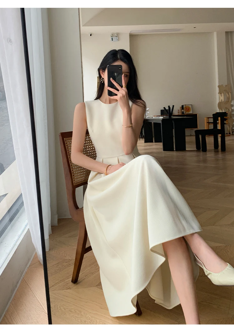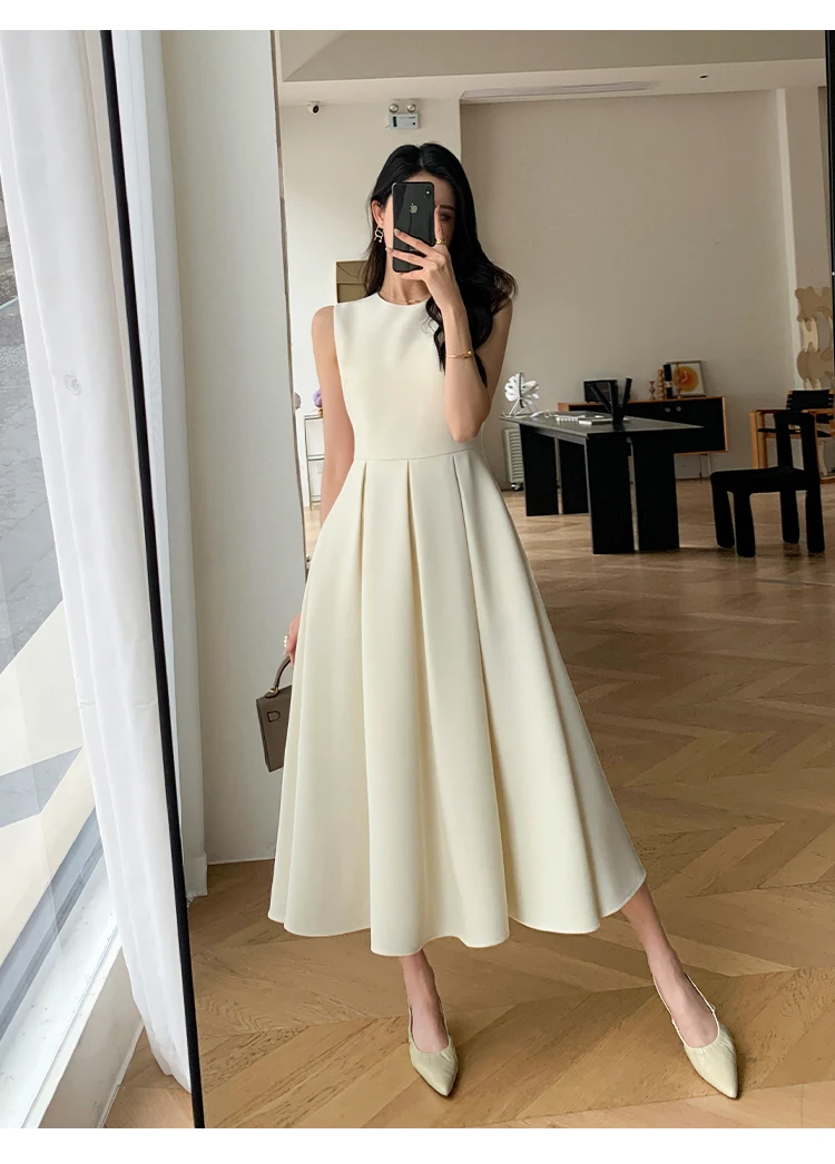 vmtvr Fashion Korean Women Summer Party Dress Vintage Casual A-Line Solid Elegant Birthday Prom Vestidos Female Chic Sundress Mujers