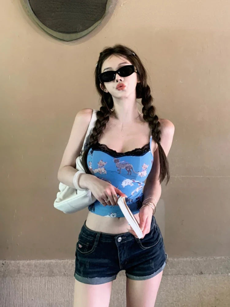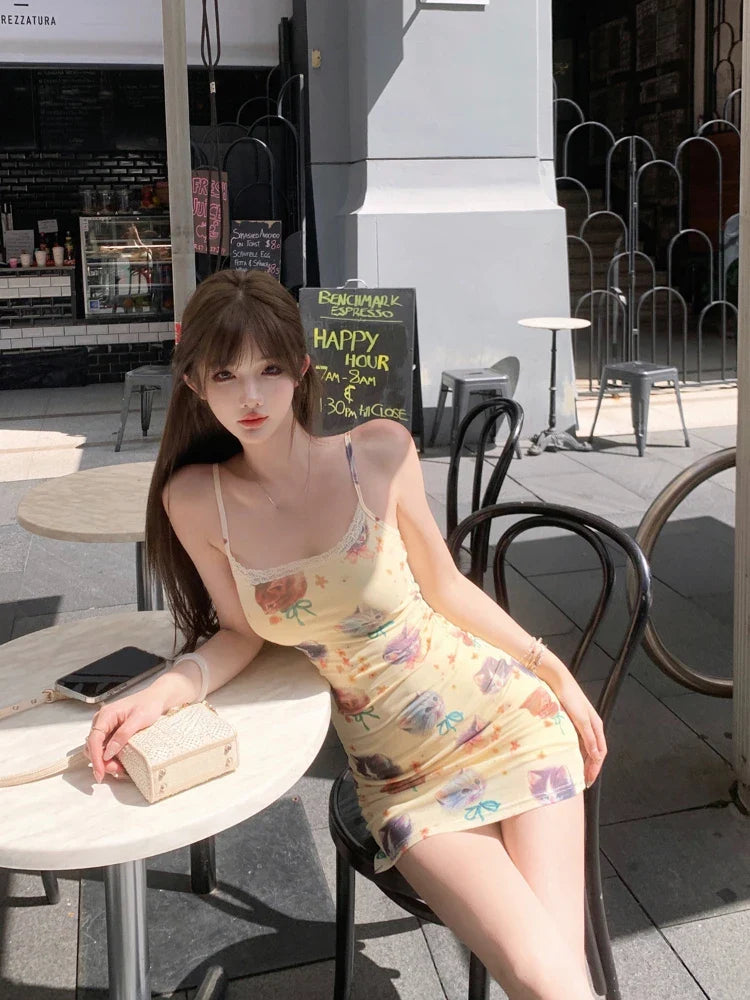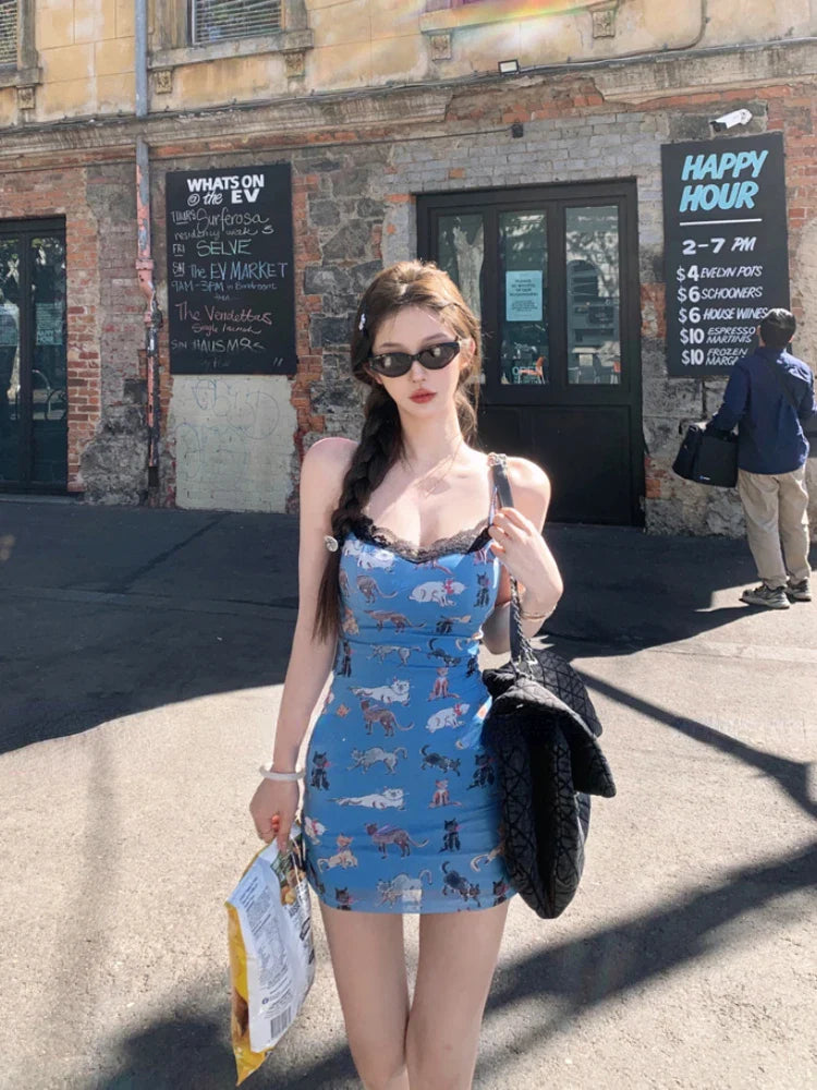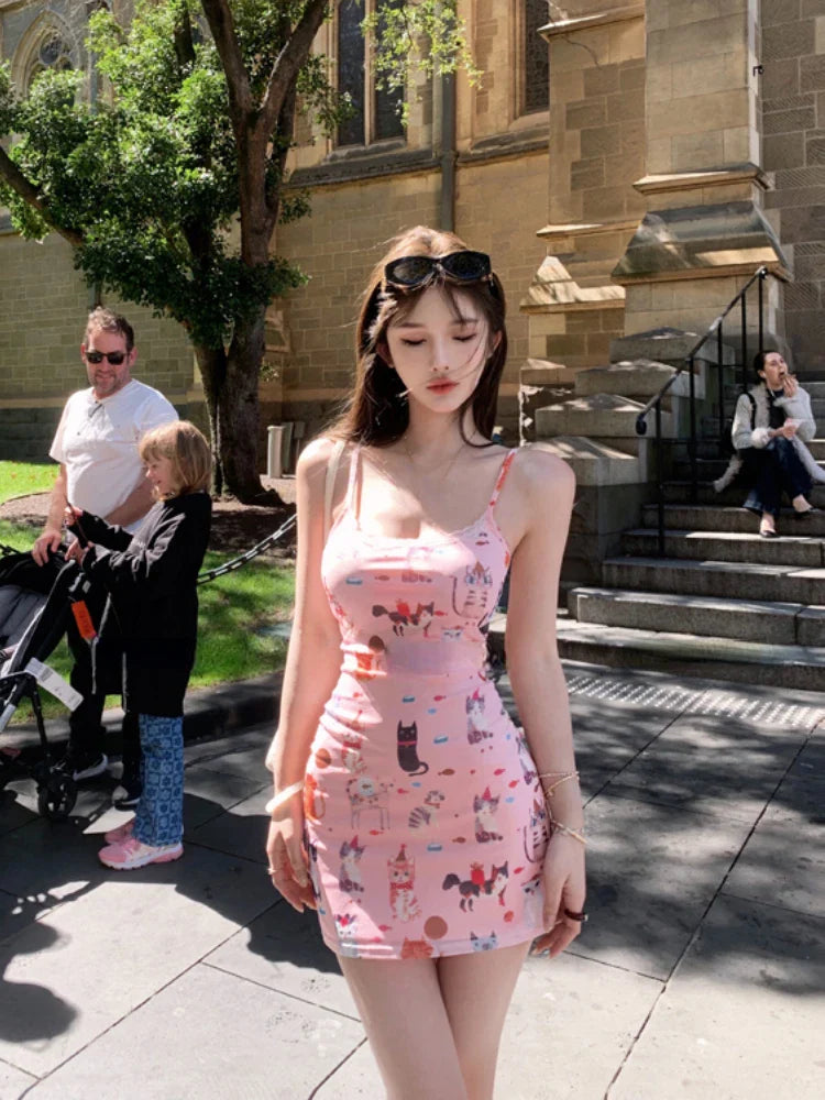vmtvr 2000s Y2k Print Dress Women Sleeveless Beach Kawaii Japanese Mini Dress Even Party Chic Korean Fashion Crop Top Vest Summer