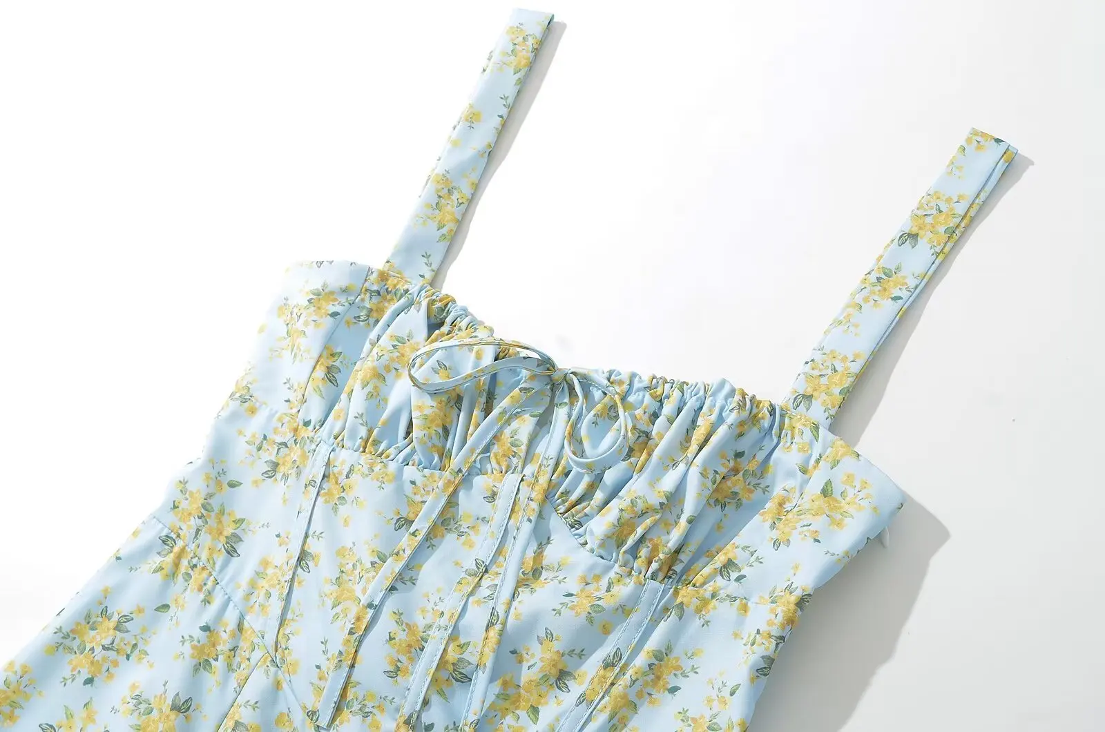 vmtvr 2024 Women Spaghetti Strap Floral Print Sexy Elegant Dress Summer Holiday Lady Party Dress Lace Up Robe