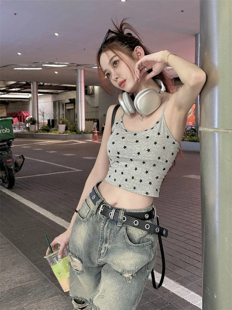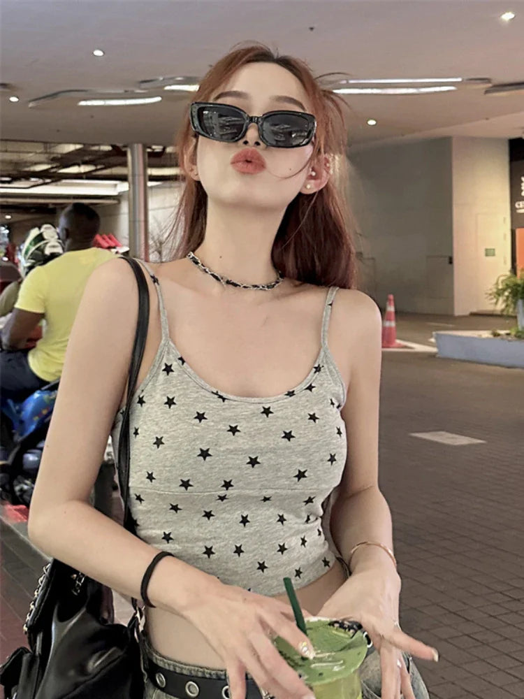 vmtvr Aesthetic Fashion Y2k Streetwear Camisole Japanese Preppy Star Print Tank Tops Summer All Match Grunge Bottoming Tanks Outwear