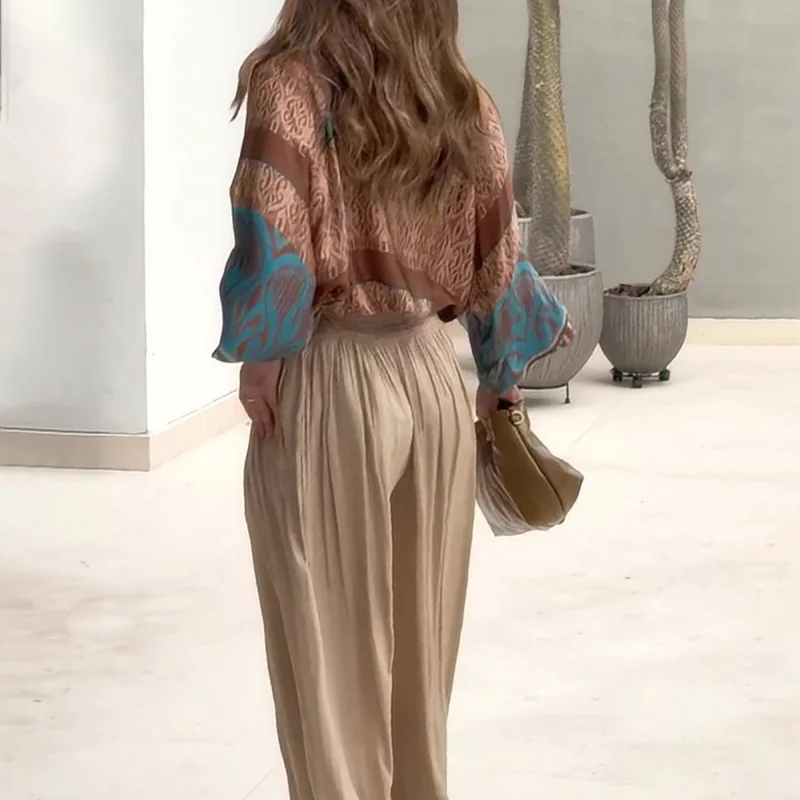 vmtvr Casual Pattern Printed Long Sleeved Suits Women's Fashion Streetwear Wide Leg Pants Outfits Spring Summer Commuter Loose 2pc Set