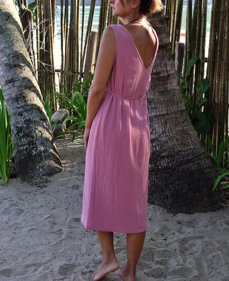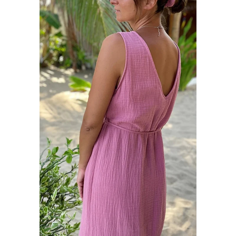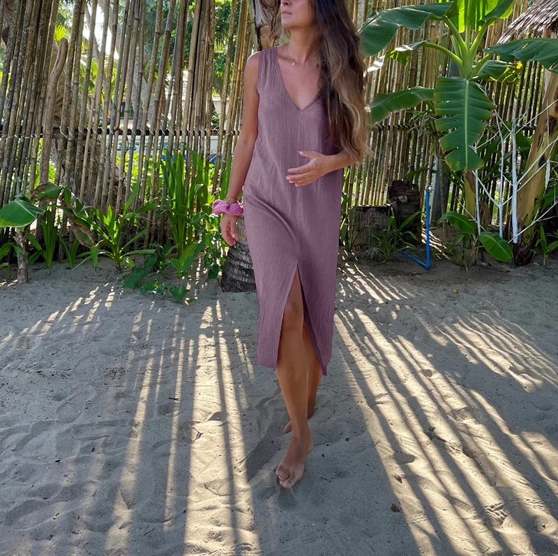 vmtvr Chic And Elegant Dress For Women 100% Cotton Gauze Summer Sexy V-neck Sleeveless Side Long Maxi Birthday Party Beach Sundress