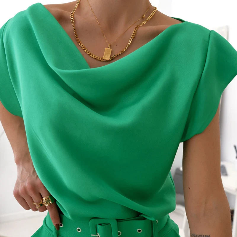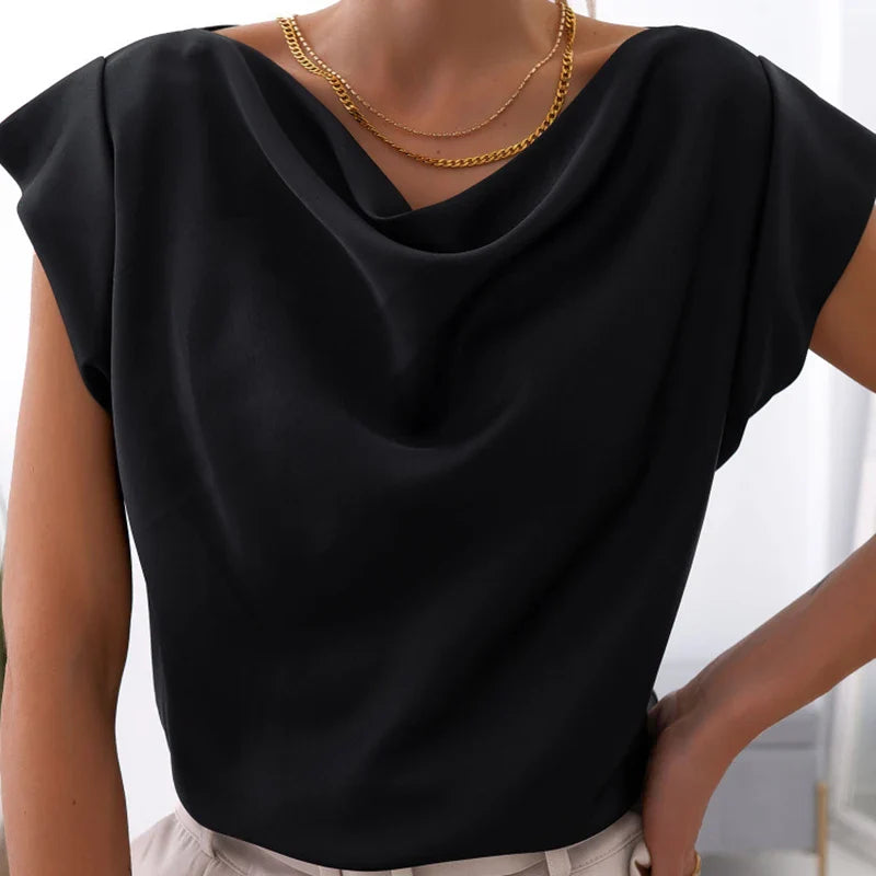 vmtvr Chic Fashion Swing Collar Draped Blouses Women 2024 Spring Solid Office Lady Tops Pullover Summer Short Sleeve Streetwear Shirts