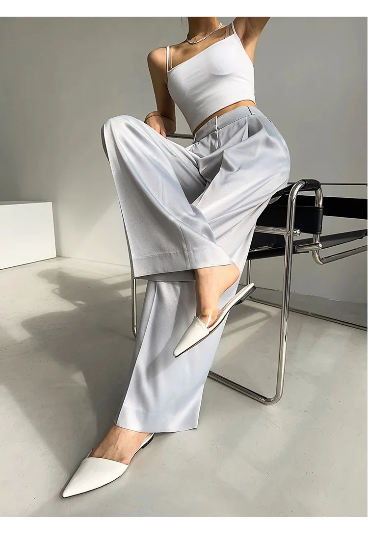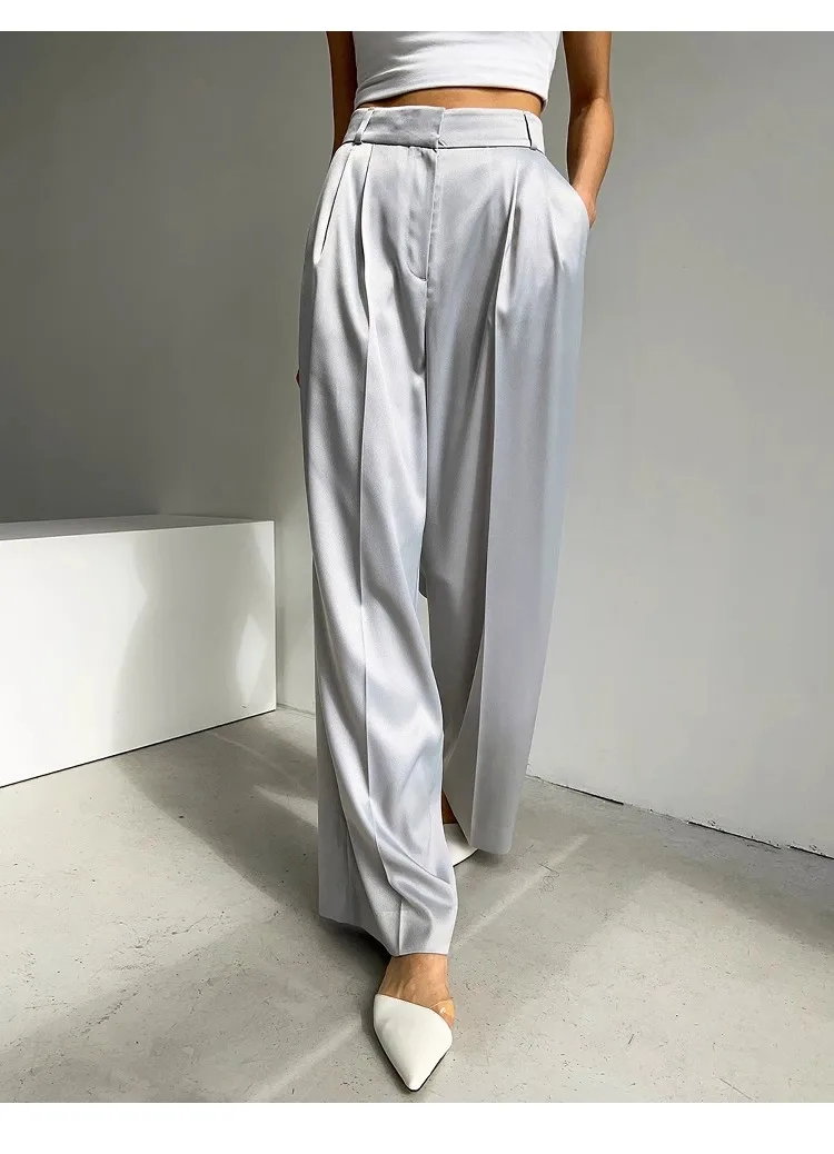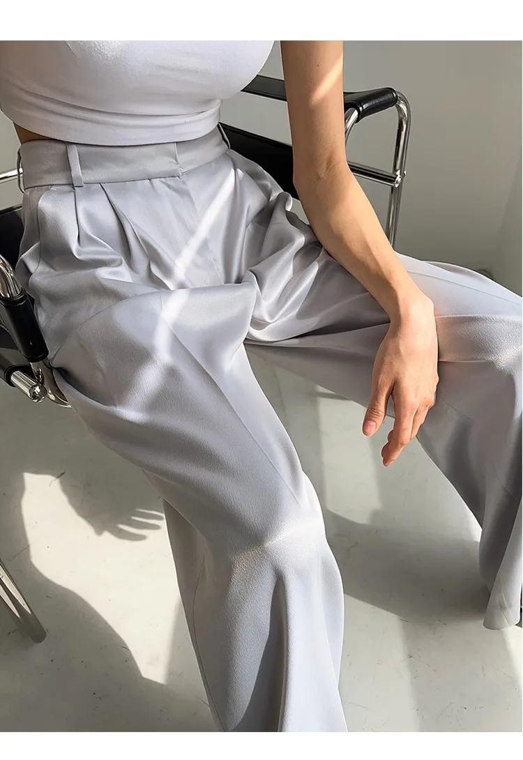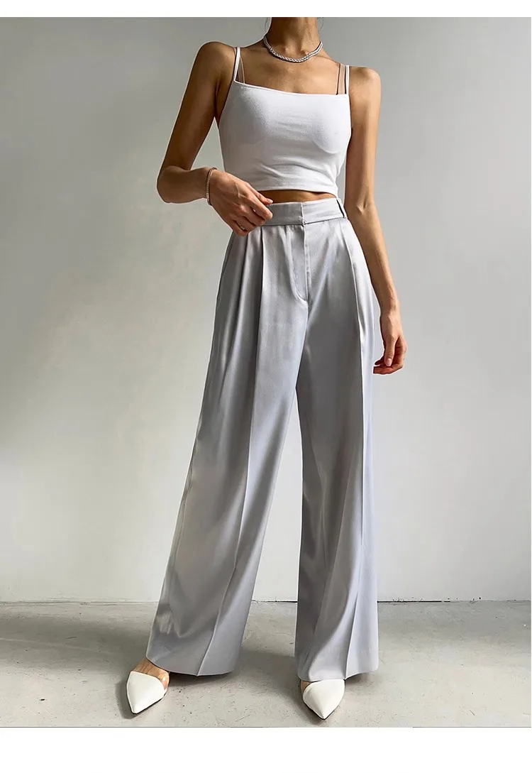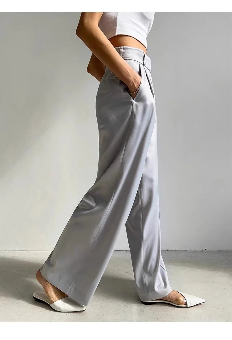 vmtvr Chic Office Ladies Wide Leg Trousers Casual Loose Floor Length Suits Pants Straight Women 2024 Summer Autumn High Waist