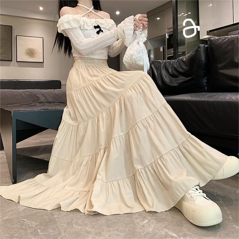 vmtvr church outfit Chanel Style Korean Style Cake Skirt 2024 New Spring and Summer Slimming High Waist Design Stitching Western Style All-Match Long Skirt for Women