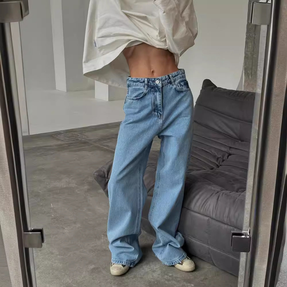 vmtvr dress to impress outfits American Hot Girl Washed Wide-Leg Small Jeans Summer New Low Waist Loose Slimming Straight All-Match Pants