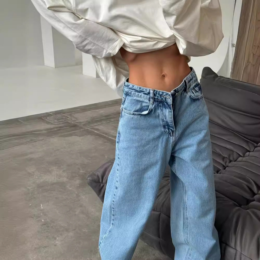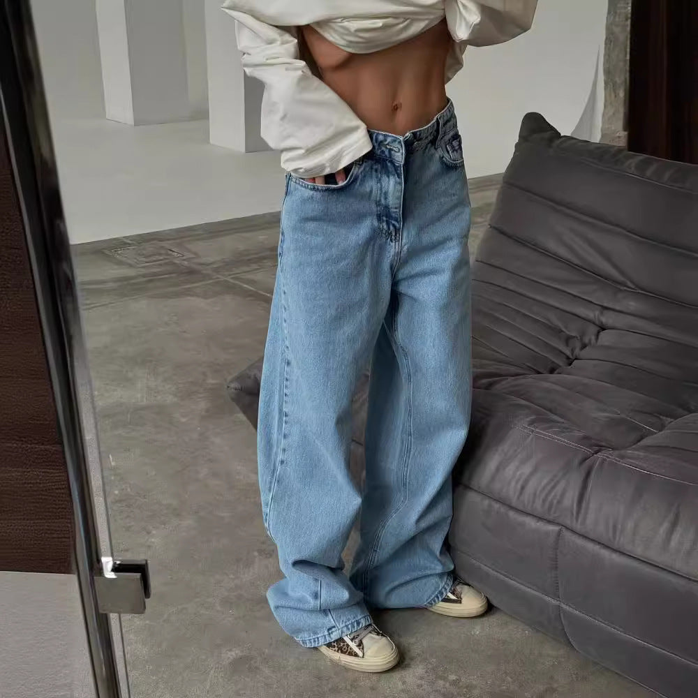 dress to impress outfits American Hot Girl Washed Wide-Leg Small Jeans Summer New Low Waist Loose Slimming Straight All-Match Pants