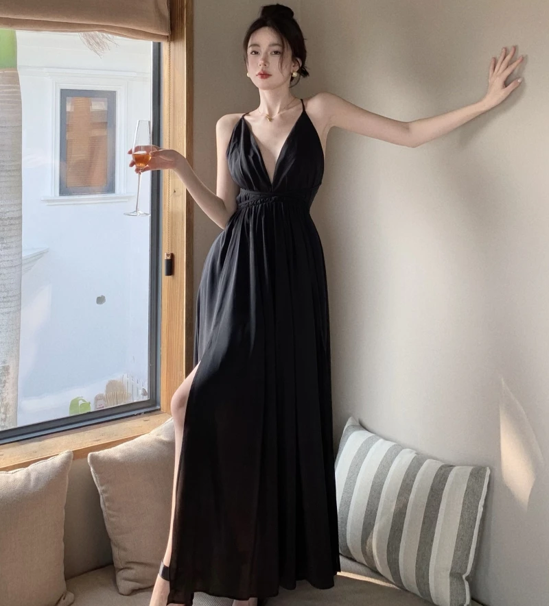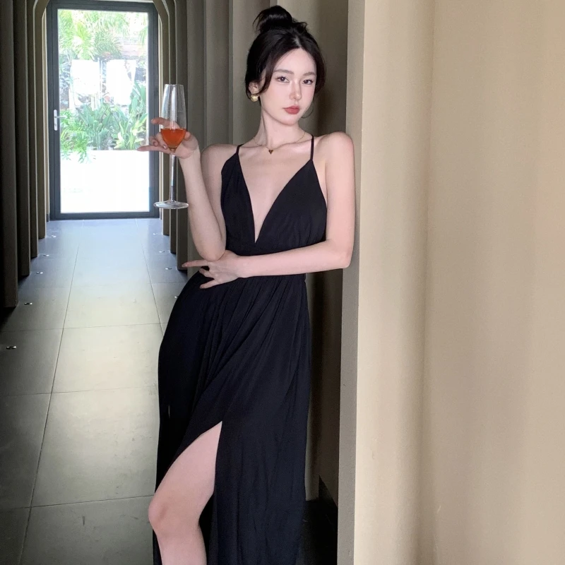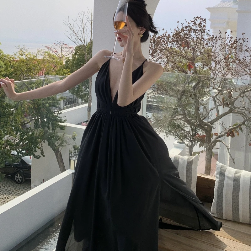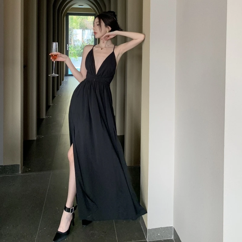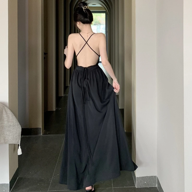 vmtvr Elegant Black Long Bodycon Dress for Women Slim Sleeveless Fashion Backless Solid Party Evening Prom Dresses New Summer