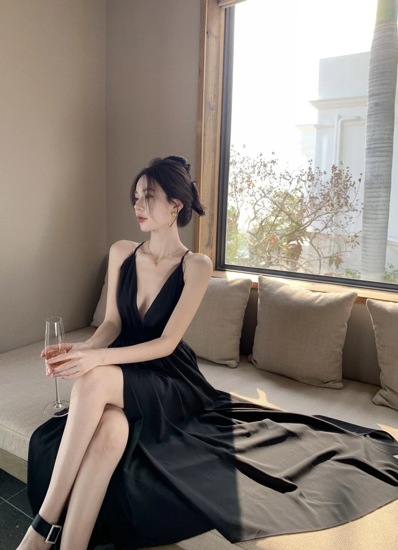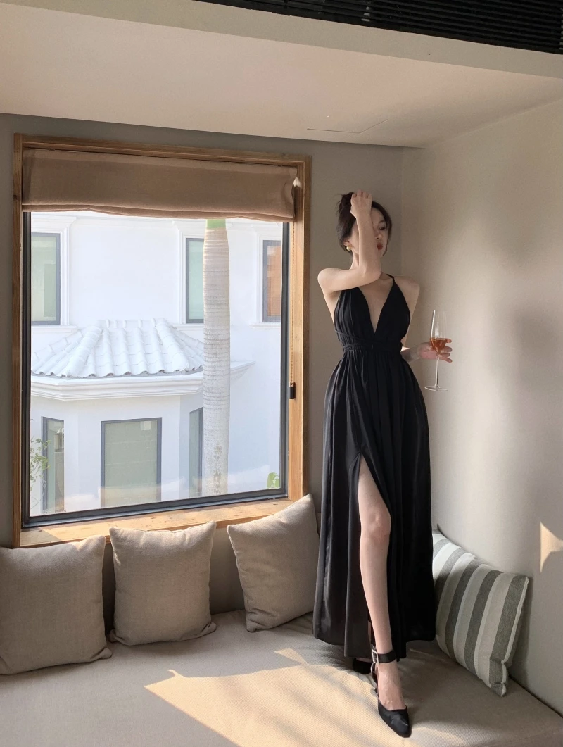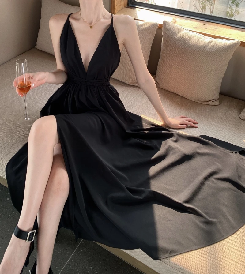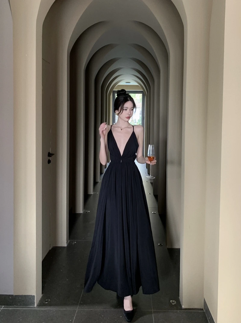 vmtvr Elegant Black Long Bodycon Dress for Women Slim Sleeveless Fashion Backless Solid Party Evening Prom Dresses New Summer