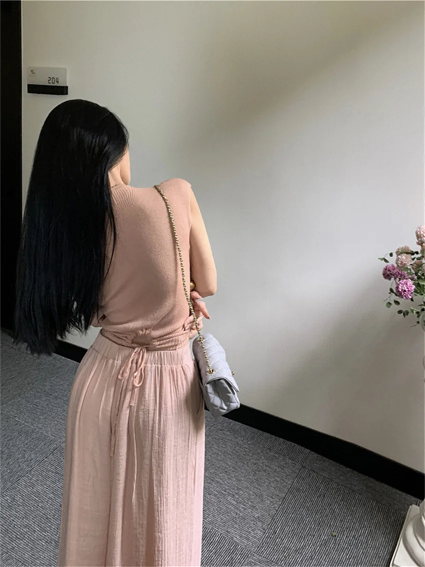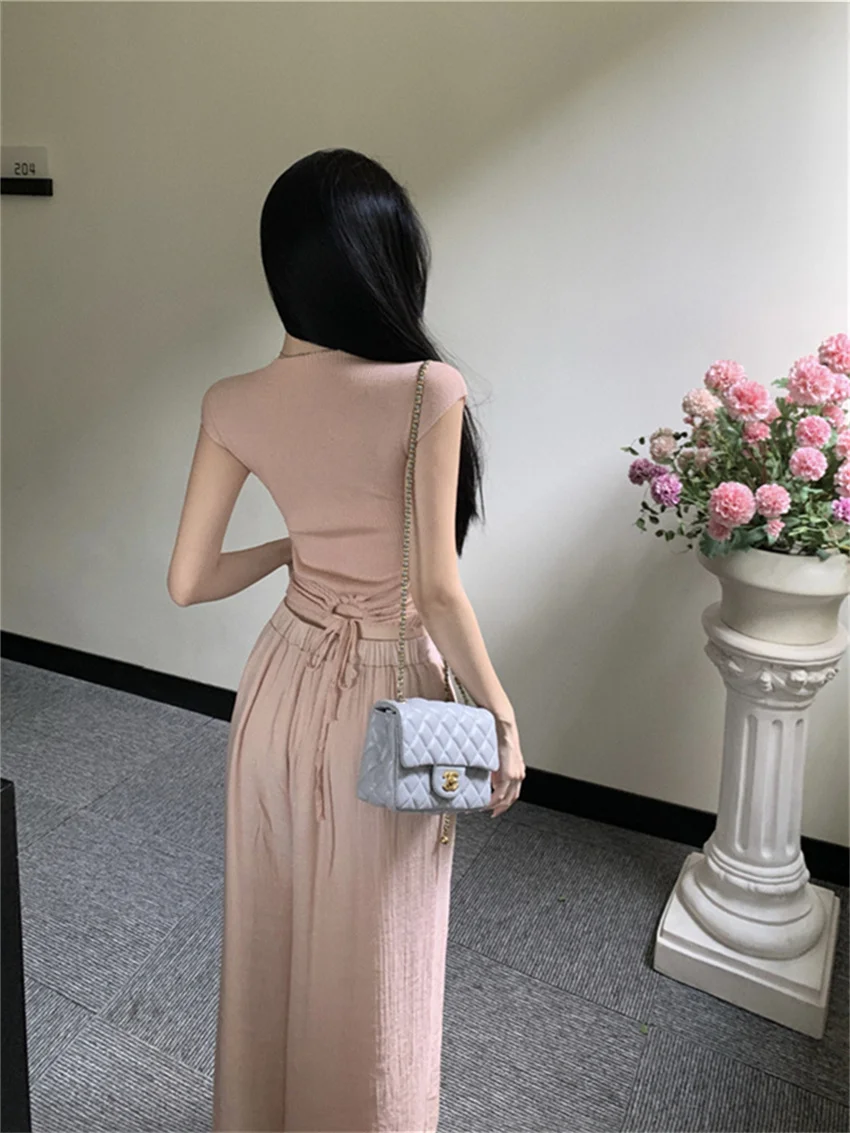 vmtvr Elegant Knitted Skinny T-Shirts Women Chic Slim Short Sleeve Casual Mopping Pants Sets Summer Work Wear Gentle Suits