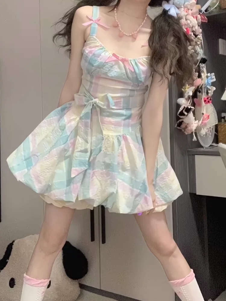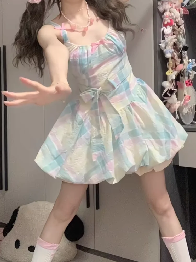 vmtvr Elegant Mini Dress Summer Bandage High Waist Slim Sweet Women Kawaii Clothing Short Party Ladies Club
