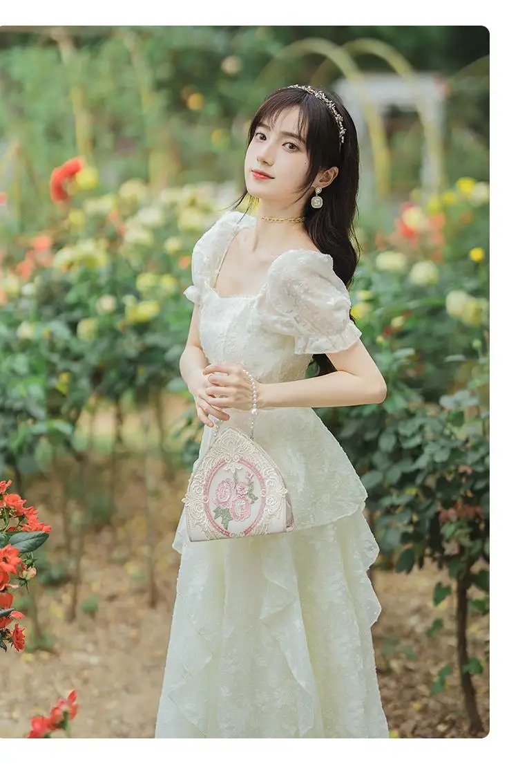 vmtvr Elegant Vintage Fairy Dress Women Sweet Embroidery Casual Korean Style Midi Dress Female Summer Beach Holiday Party Dresses