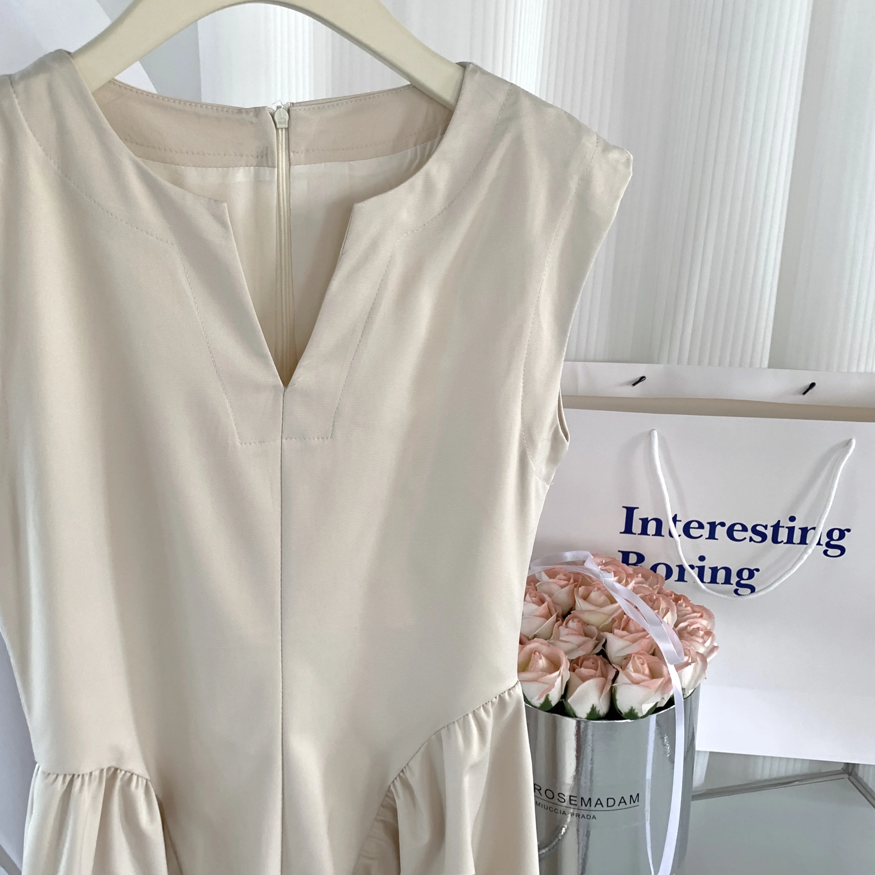 vmtvr Elegant Women V-Neck Quality Slim Sleeveless Zipper Waisted Dress Office Ladies Party Midi Dresses Vestidos Summer