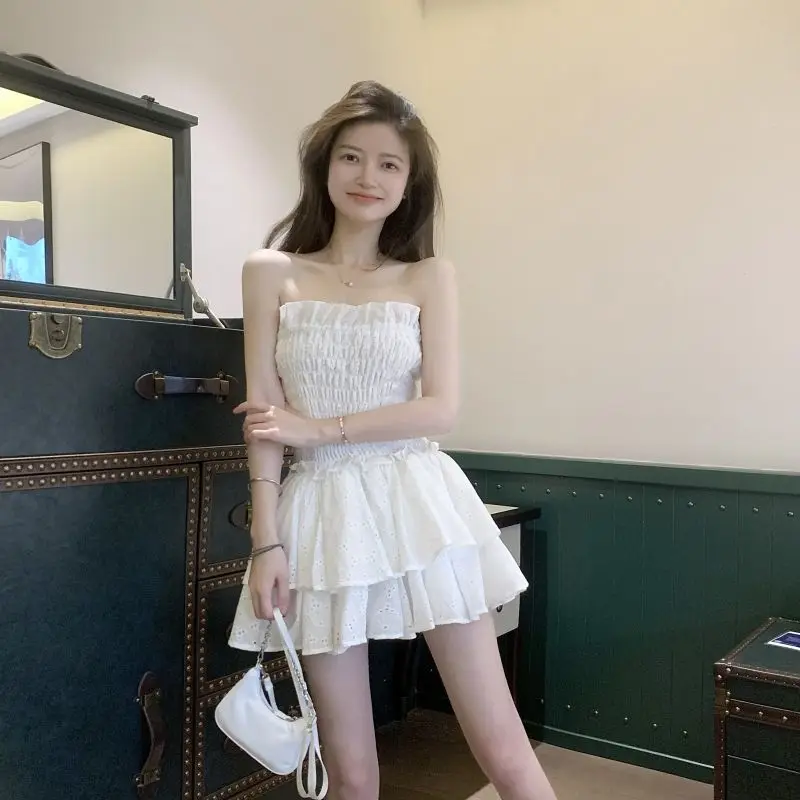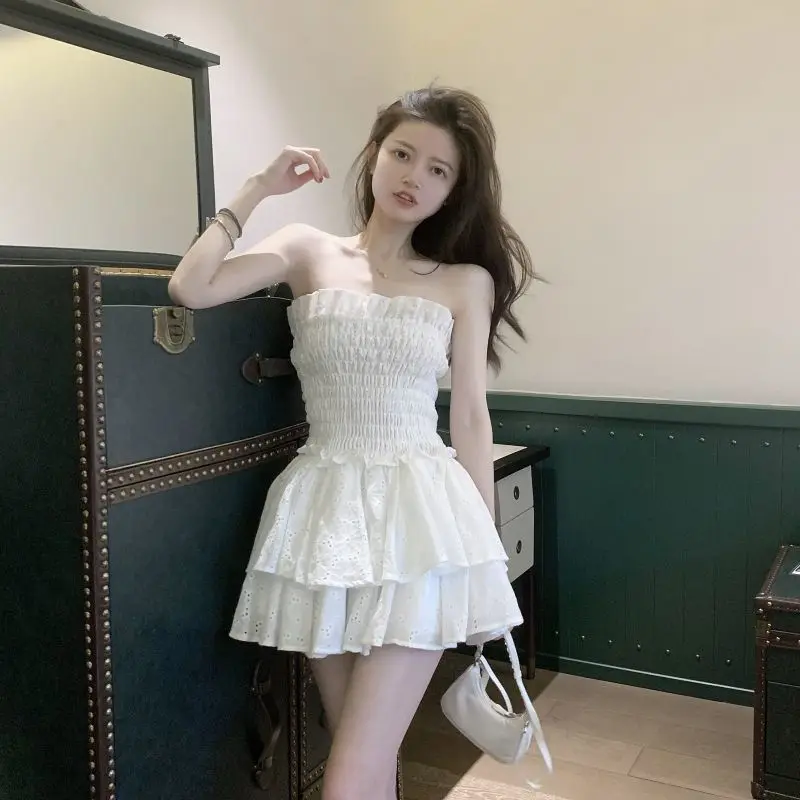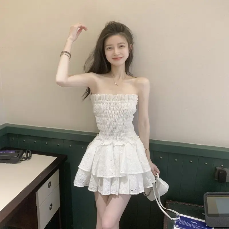 vmtvr Fashion Folds Women Dress Summer Casual Sexy Off Shoulder Female Mini Dresses Y2K Korean Cute Prom Dresses Dress New