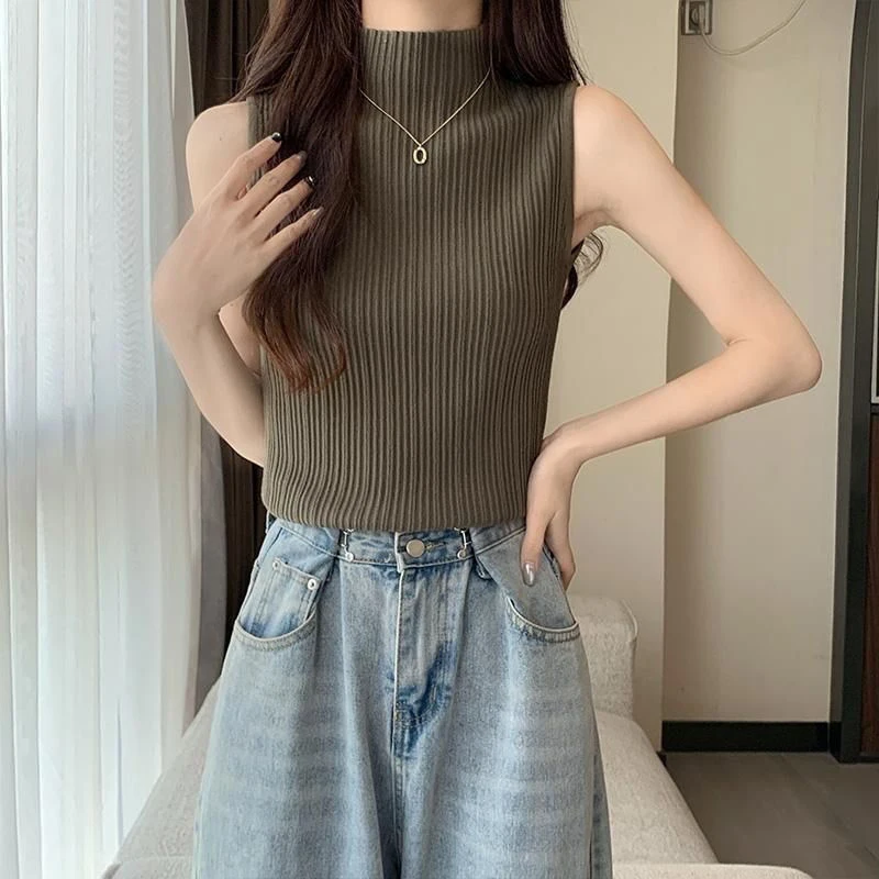 vmtvr Fashion Women Camis Summer Korean Casual Slim Fit Sleeveless Knitting Tops Y2K Female All Match Elegant Tanks New