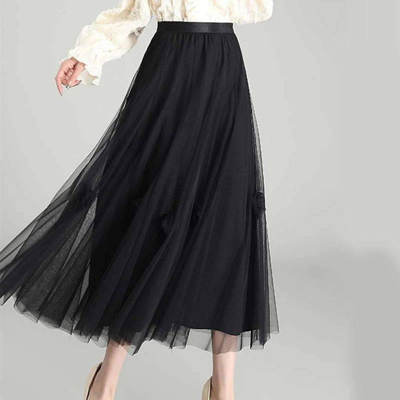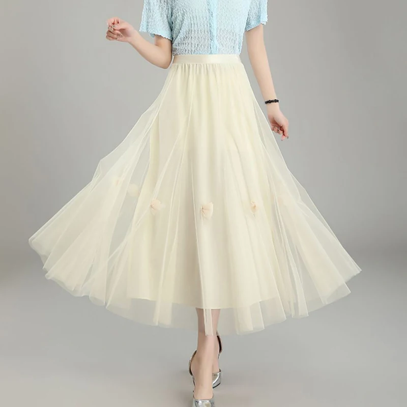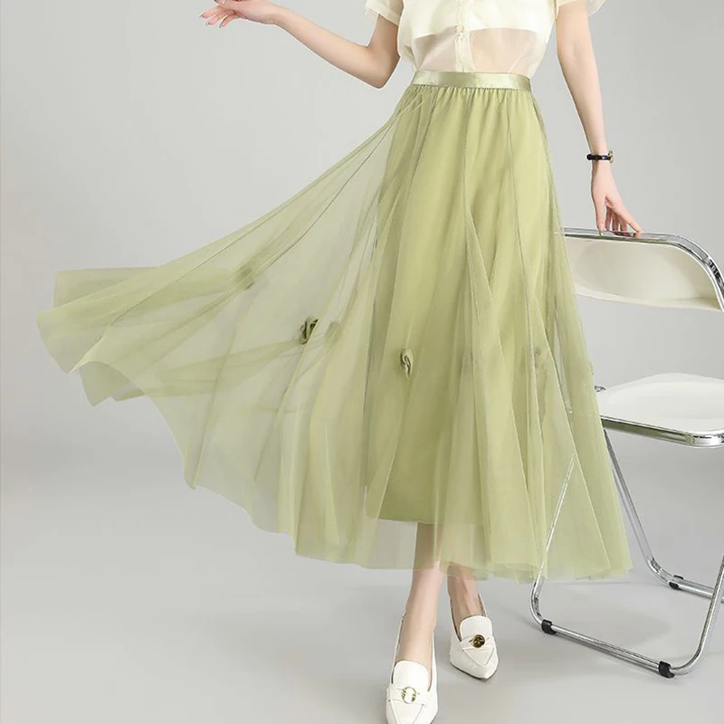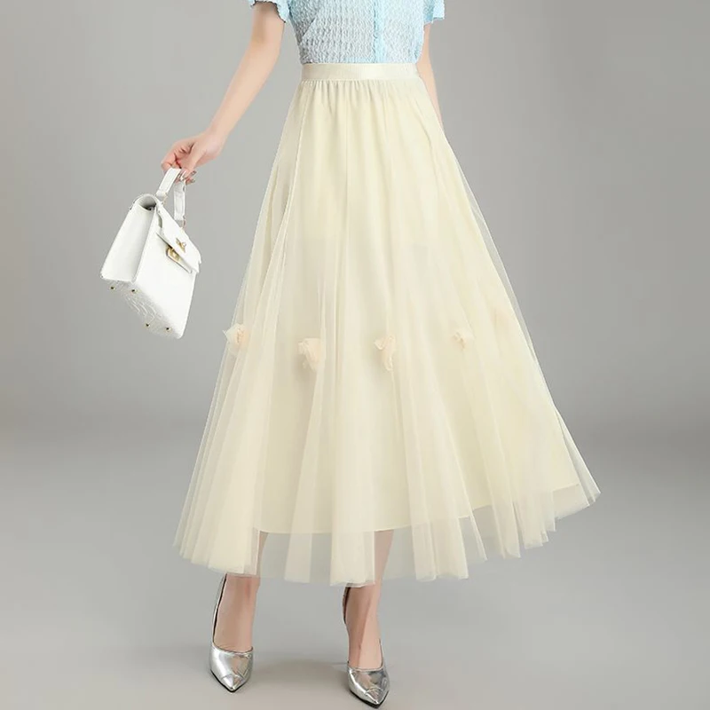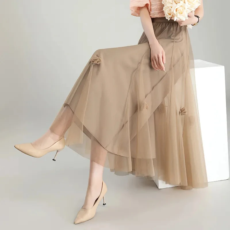 vmtvr Fashion Women Mesh Skirts Summer Casual Ball Gown Loose Midi Skirts Korean All Match Female Elegant A Line Skirts New