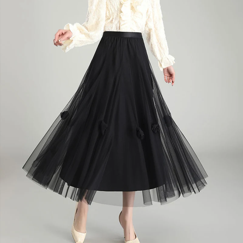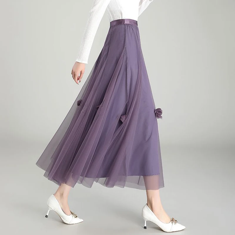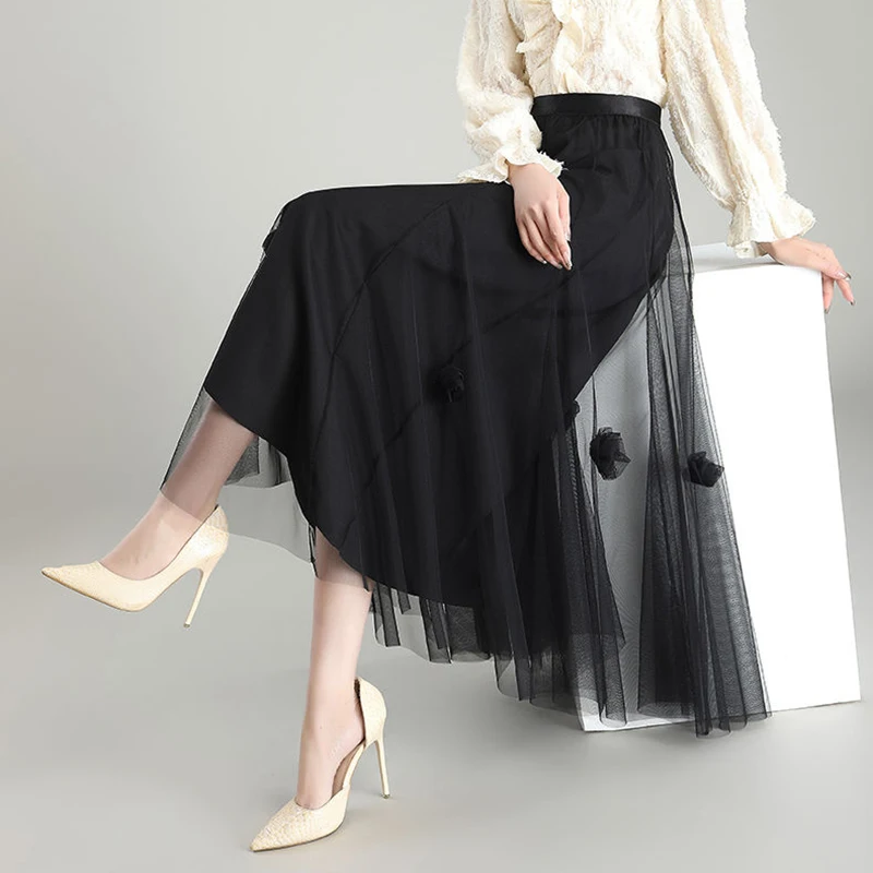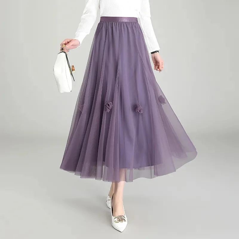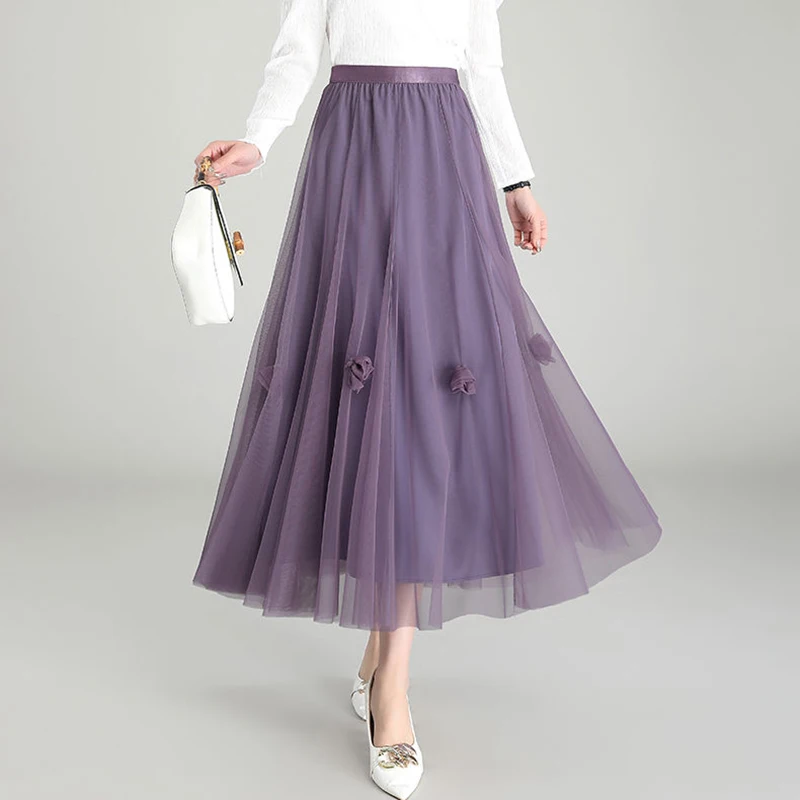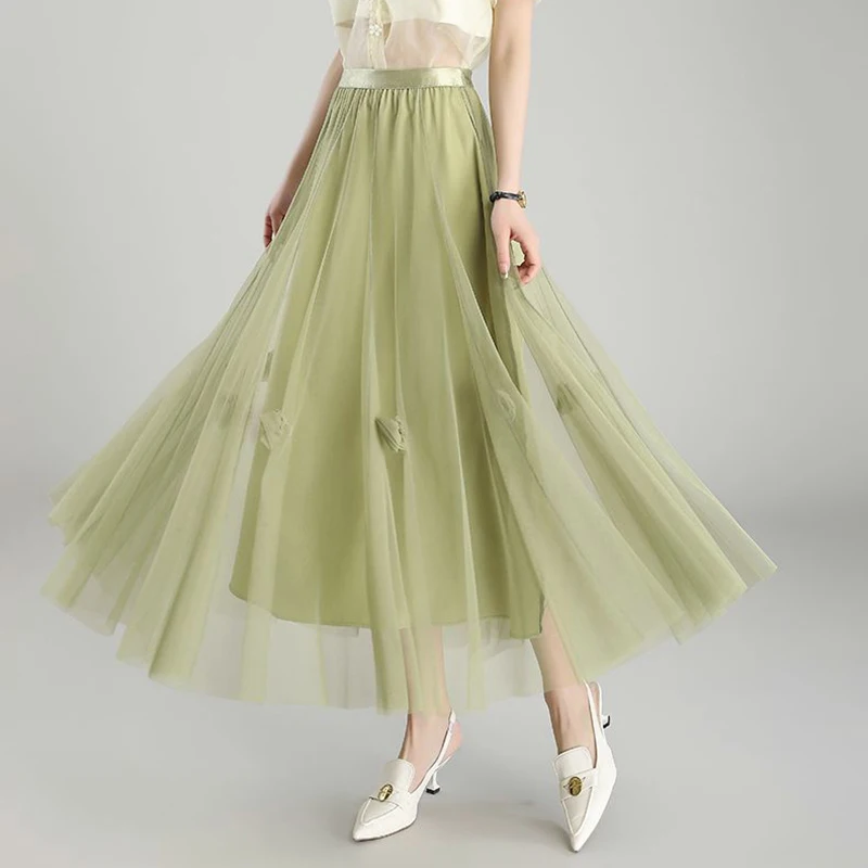 vmtvr Fashion Women Mesh Skirts Summer Casual Ball Gown Loose Midi Skirts Korean All Match Female Elegant A Line Skirts New