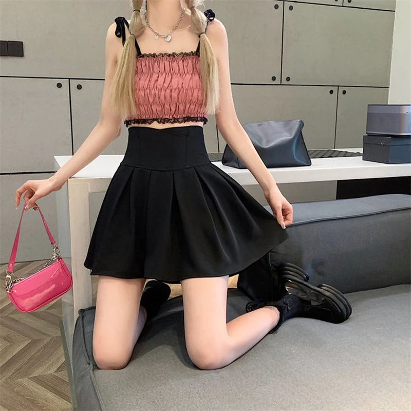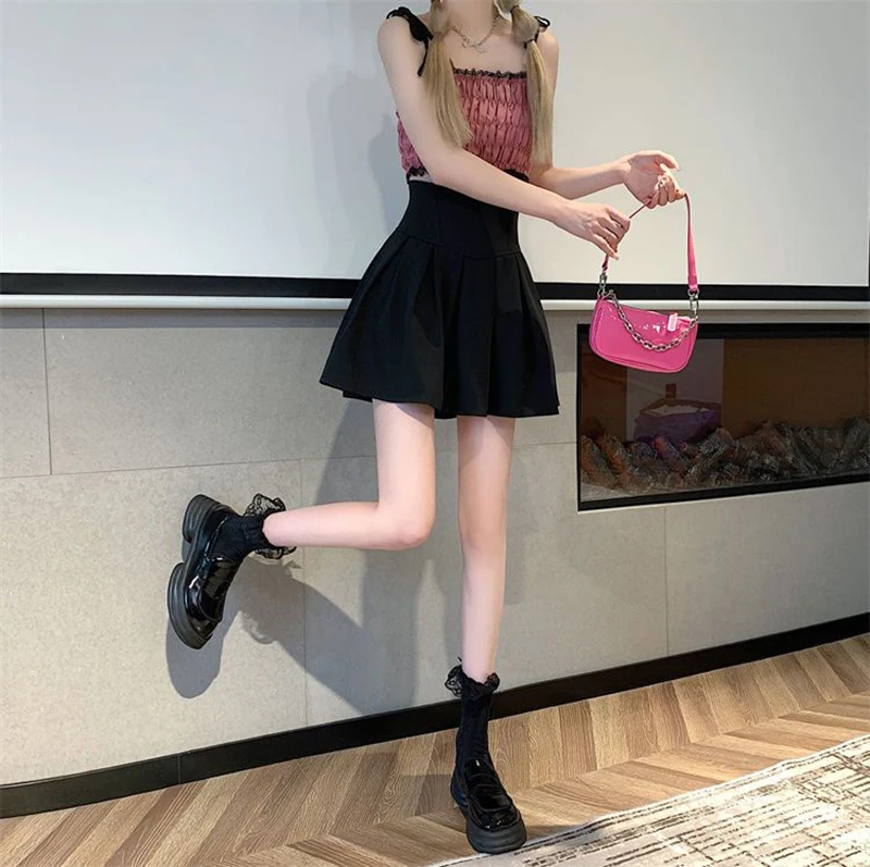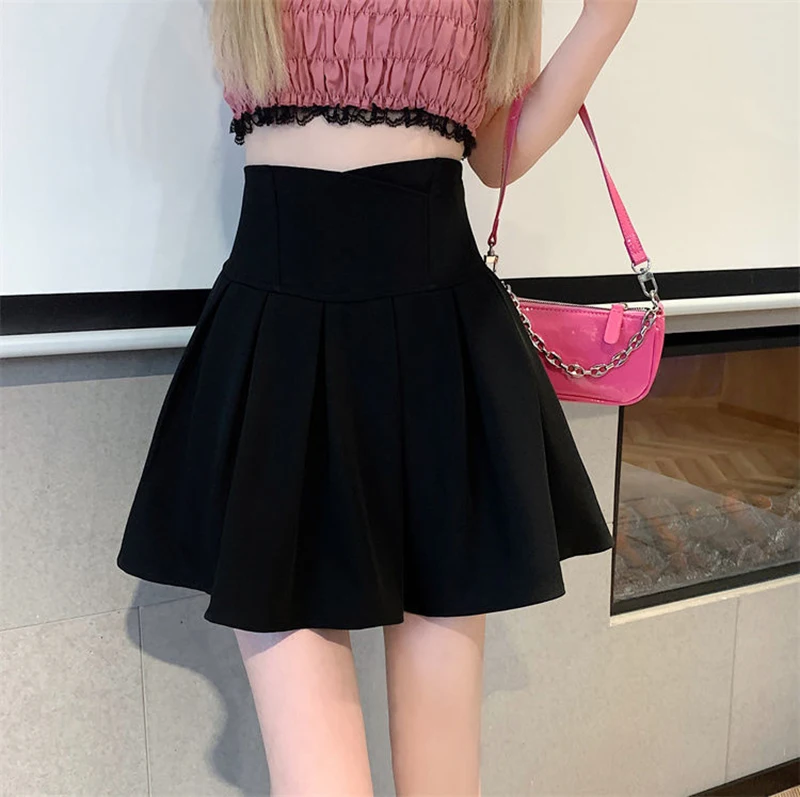 vmtvr Fashion Zipper Women Korean White Skirt Sweet High Waist Pleated A Line Mini Skirts Summer Preppy Style Female Dance Skirt