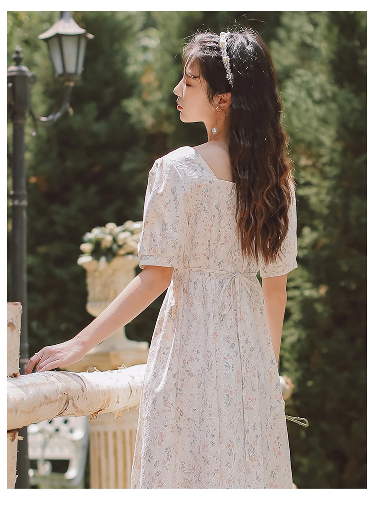 vmtvr French Puff Sleeve Fairy Dress Women Vintage Sweet Party Floral Long Dress Female Summer Chiffon Korean Bandage Dresses New