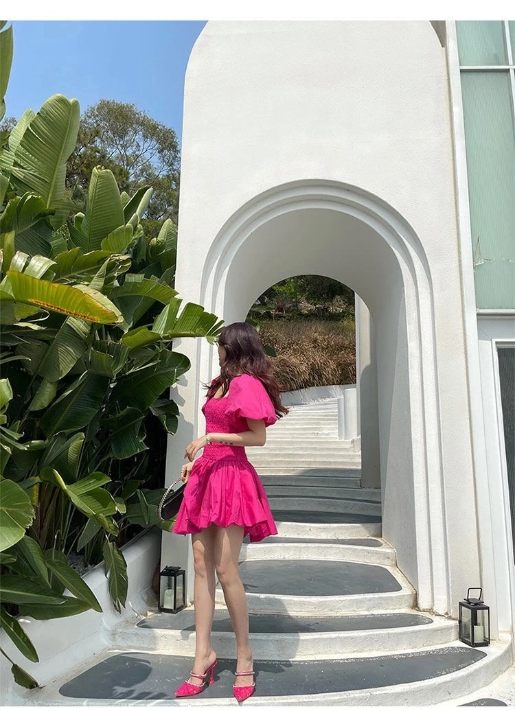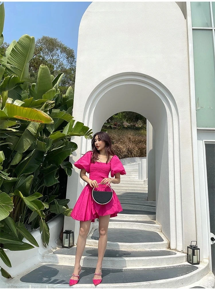 vmtvr French Vintage Fairy Dress Women Red Sweet Princess Party Mini Dress Female Summer Beach Puff Sleeve Holiday Korean Dresses