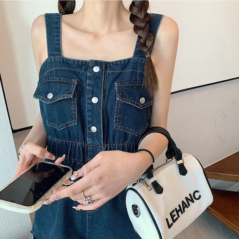 vmtvr going out outfits 2024 Summer New Workwear Suspender Jeans Women's Small Tight Waist Fashion Wide Leg Curling One-Piece Shorts