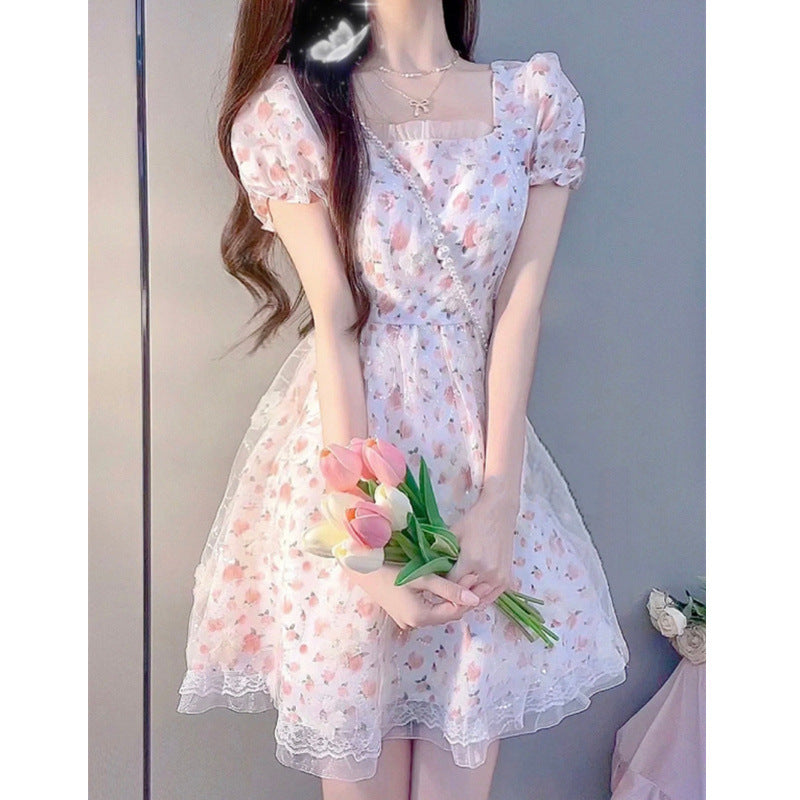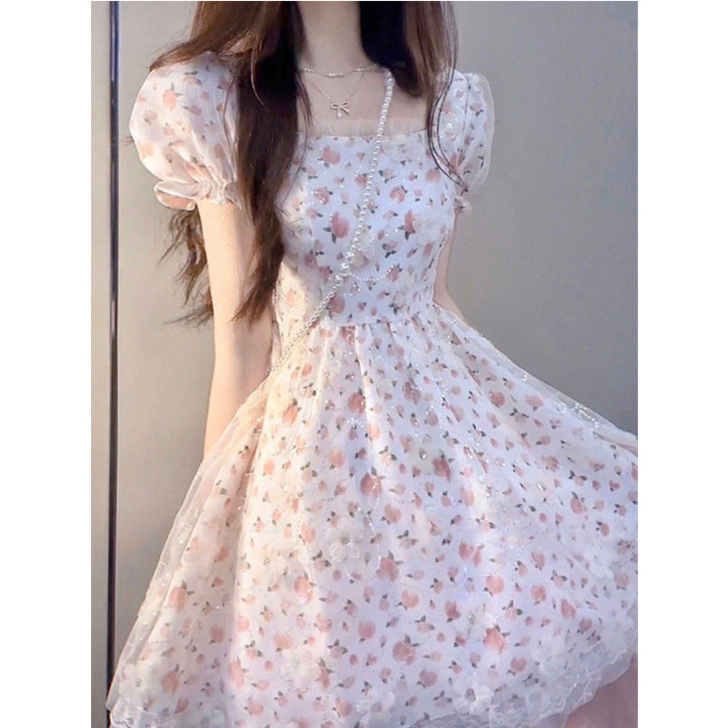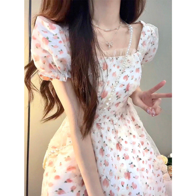 harajuku dress to impress French Milk Sweet Floral Princess Dress Waist-Tight Chic First Love Gentle Style Puff Sleeve Fluffy Dress Summer