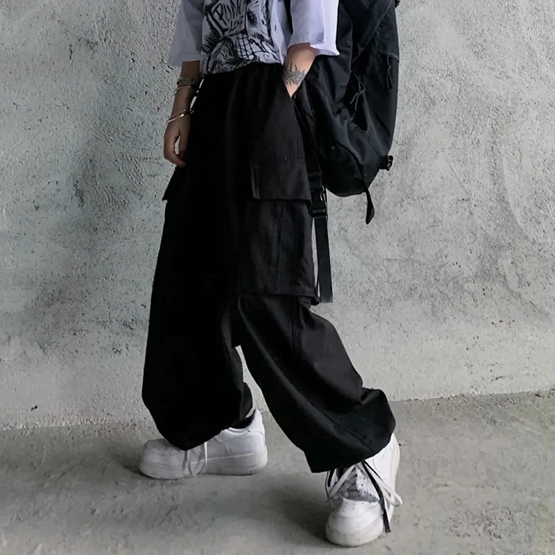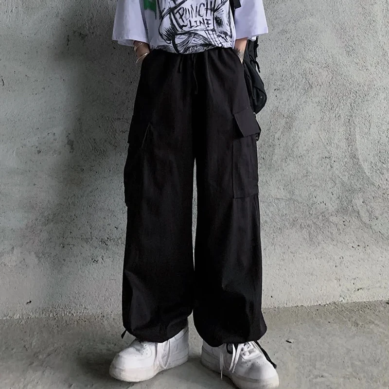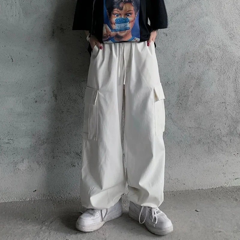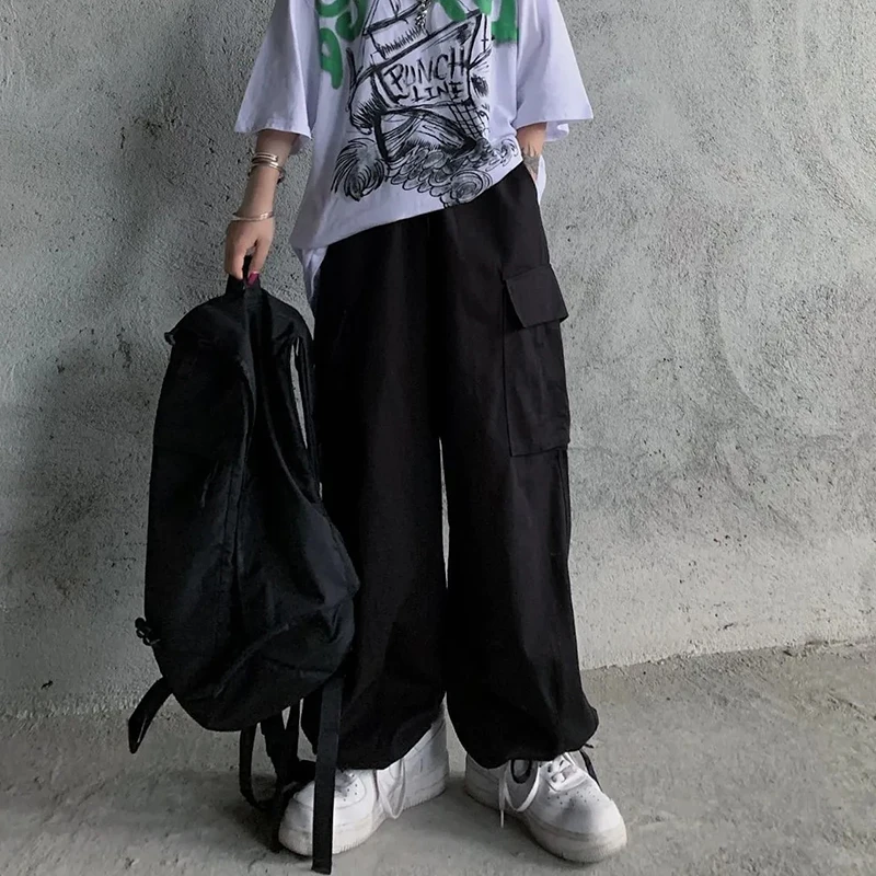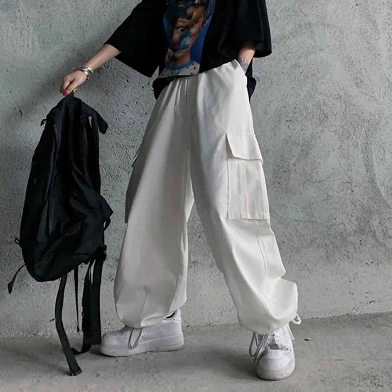vmtvr Harajuku Women Cargo Pants Japan Style Casual Big Pocket Wide Leg Pants Summer All Match Female Loose Straight Trousers