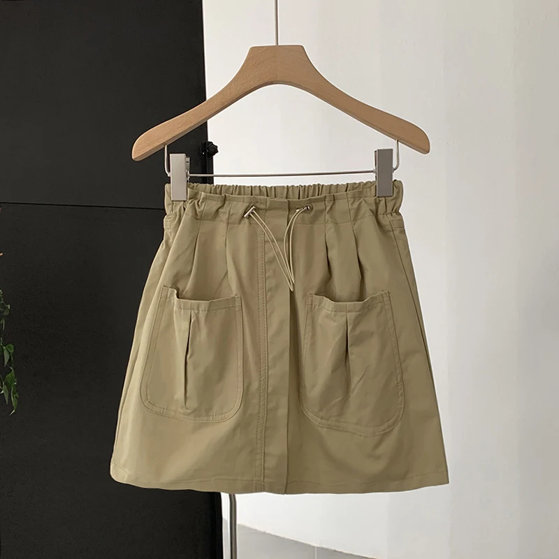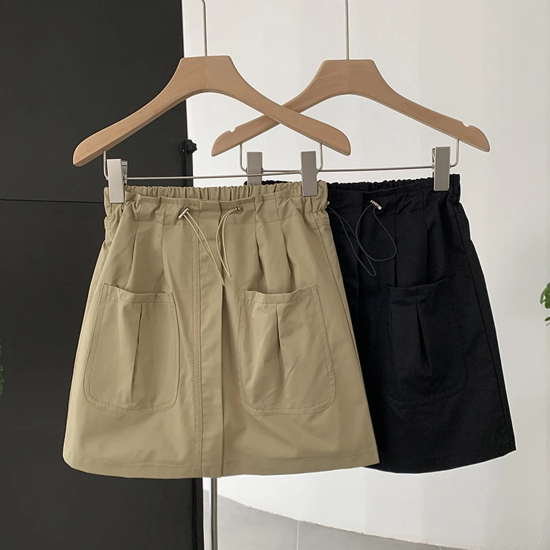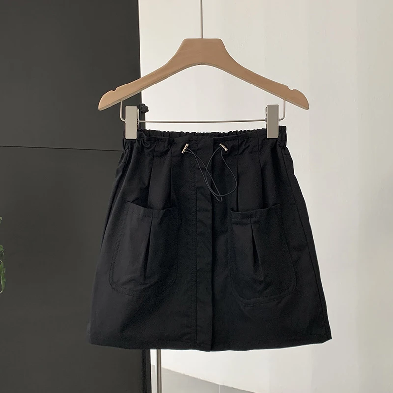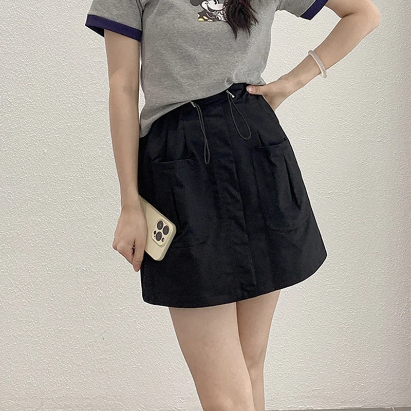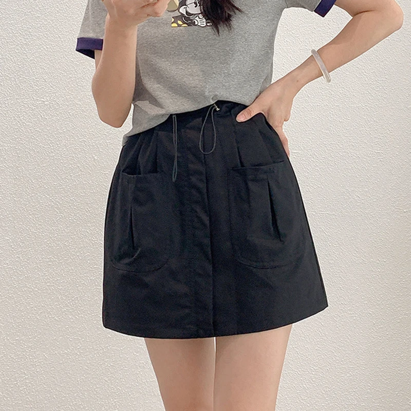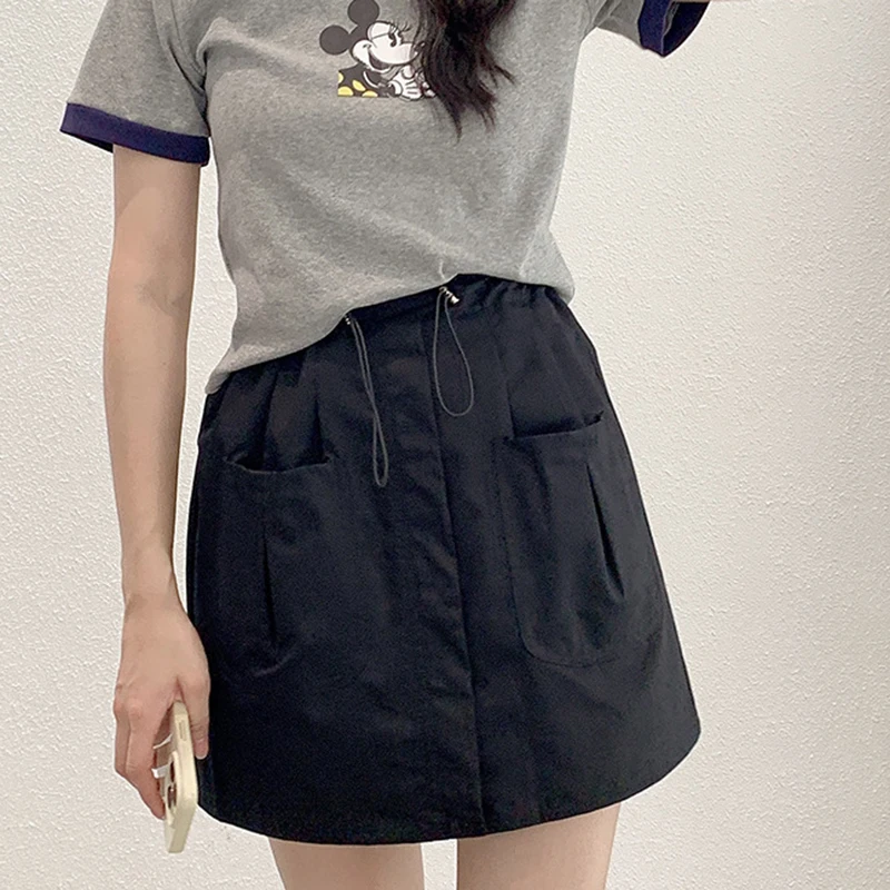 vmtvr High Waist Women Cargo Skirts Korean Fashion Drawstring Streetwear Mini Skirts Summer Casual Female Pocket A Line Skirts