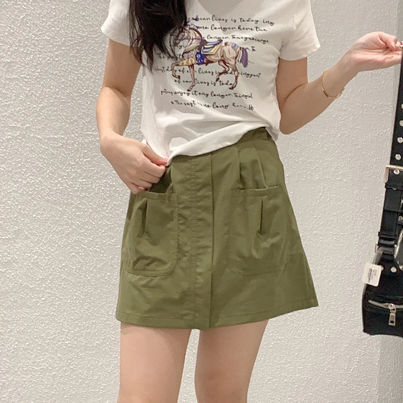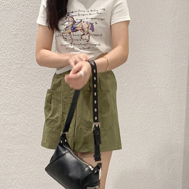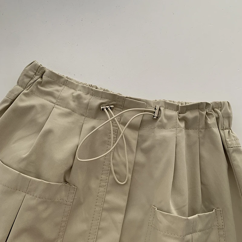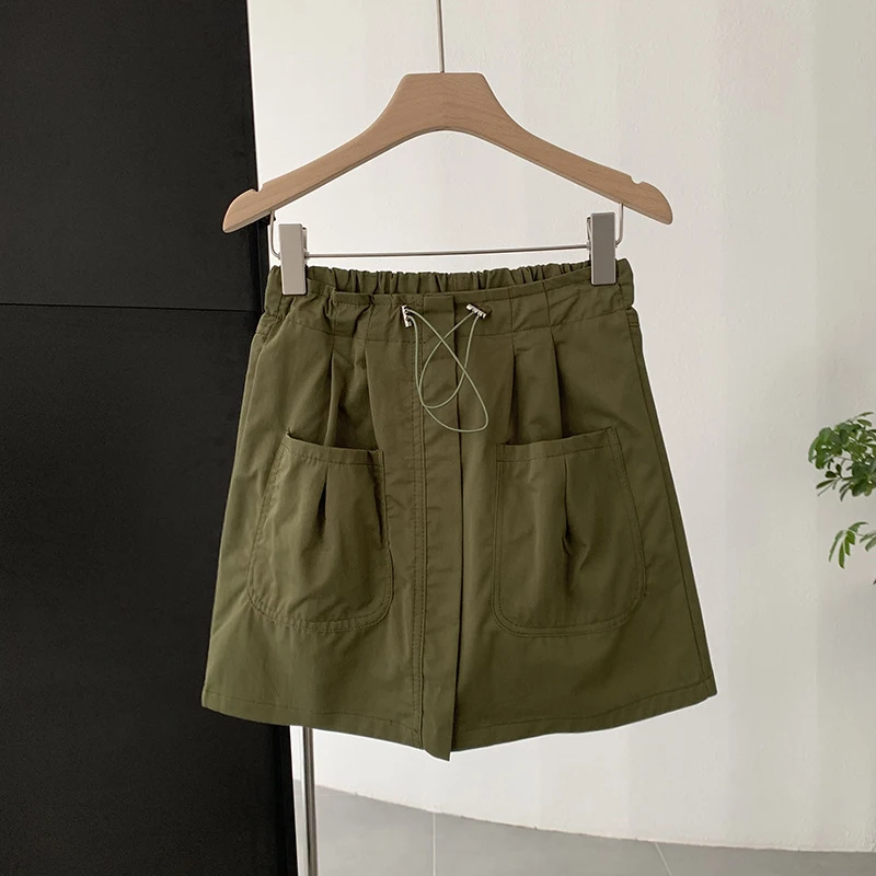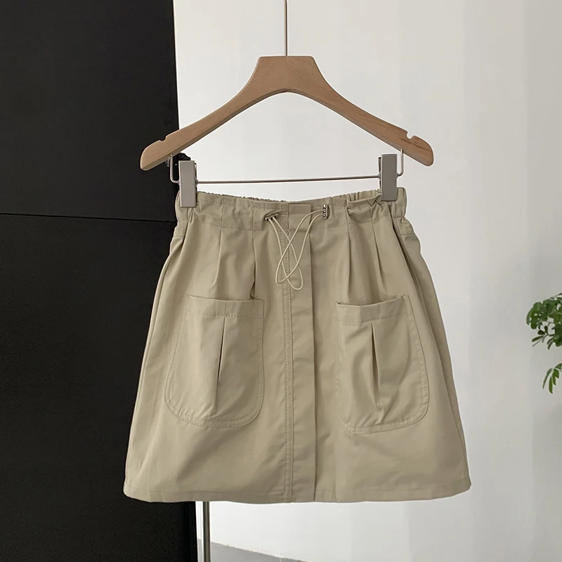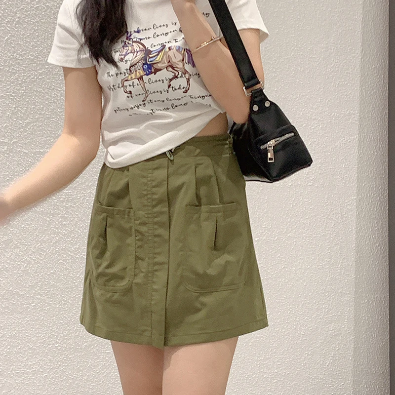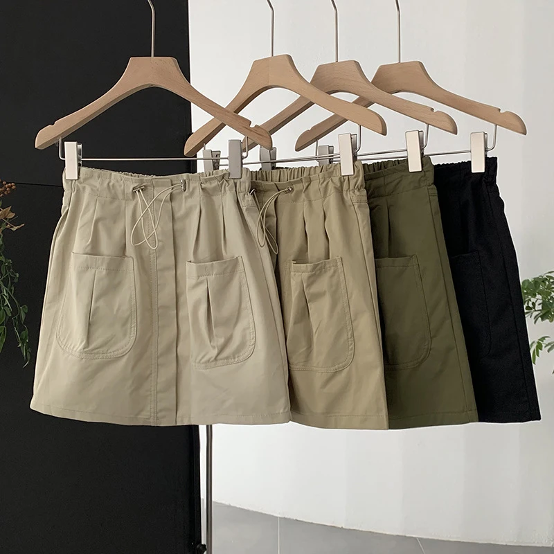 vmtvr High Waist Women Cargo Skirts Korean Fashion Drawstring Streetwear Mini Skirts Summer Casual Female Pocket A Line Skirts
