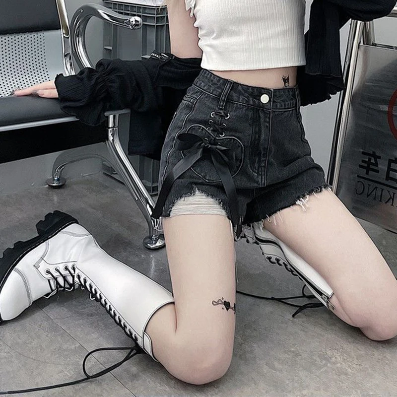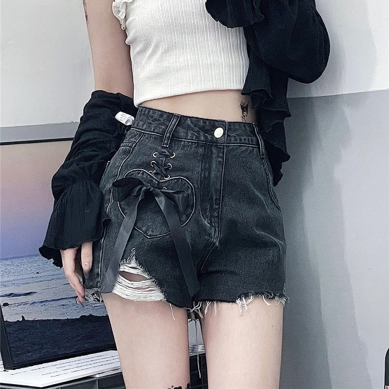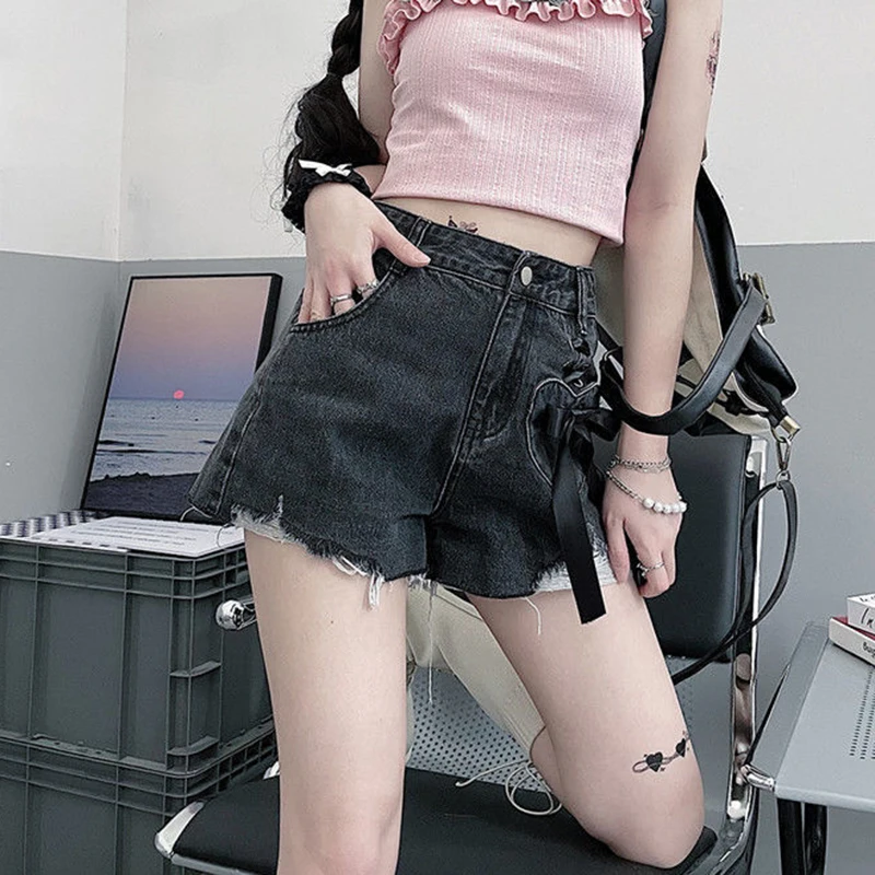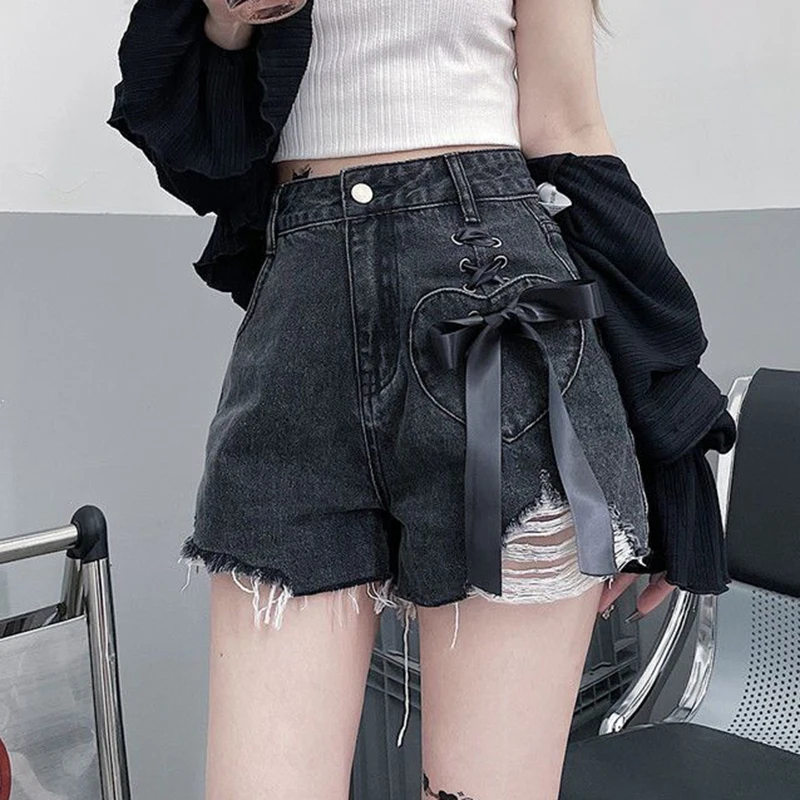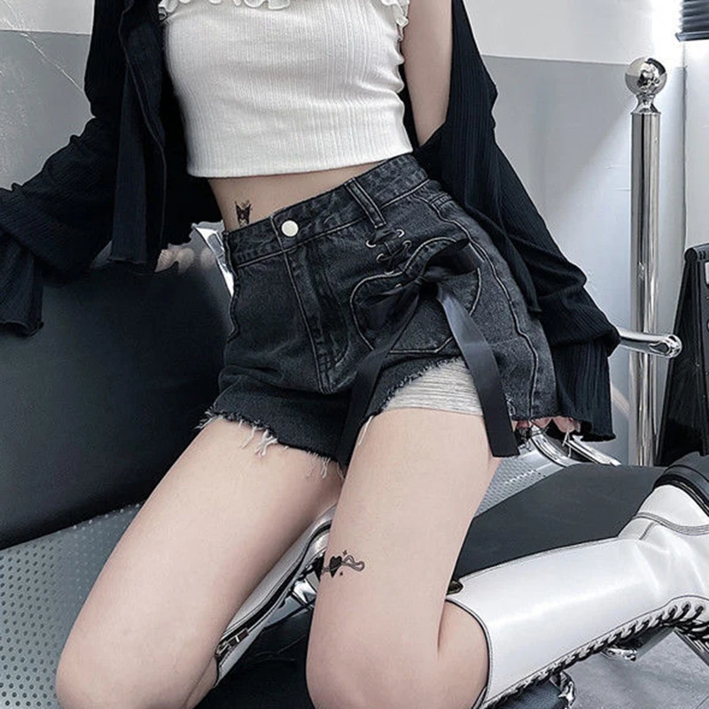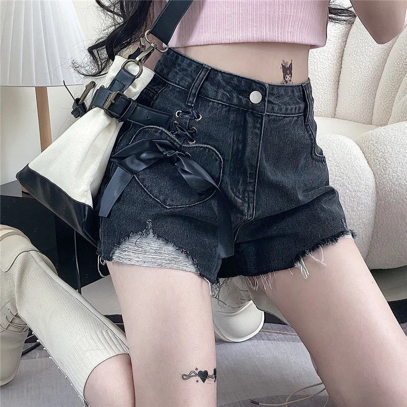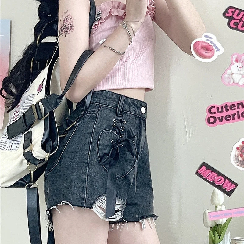 vmtvr High Waist Women Denim Shorts Summer Fashion Bow Loose Shorts Korean Casual Female Streetwear All Match Ripped Pants