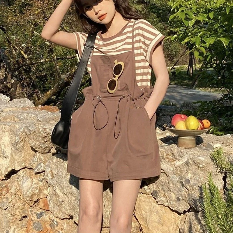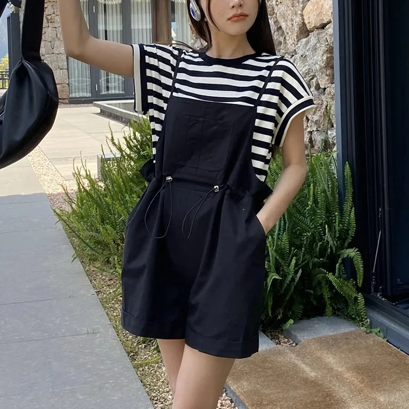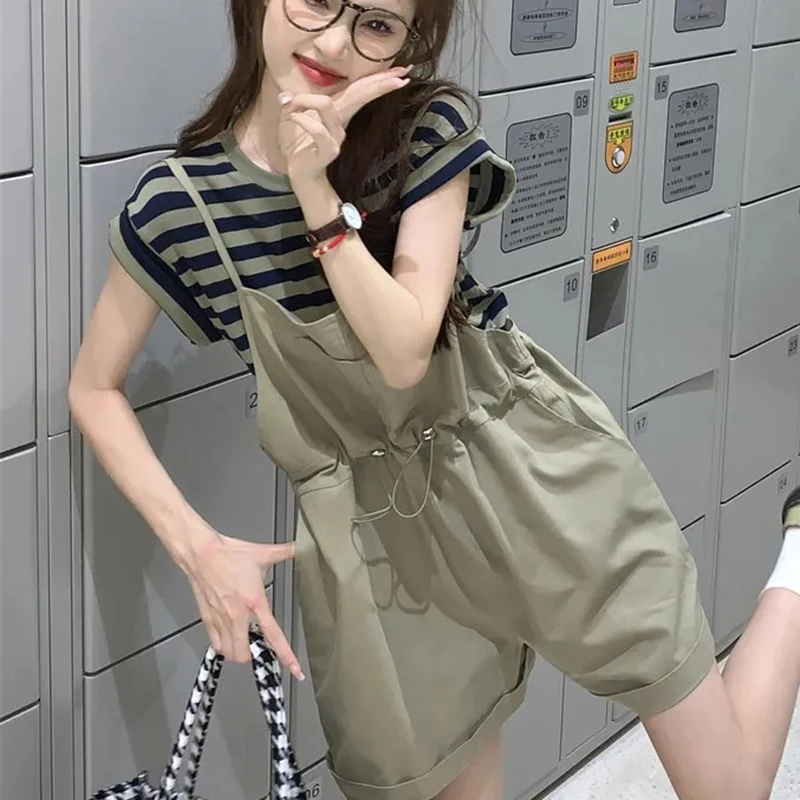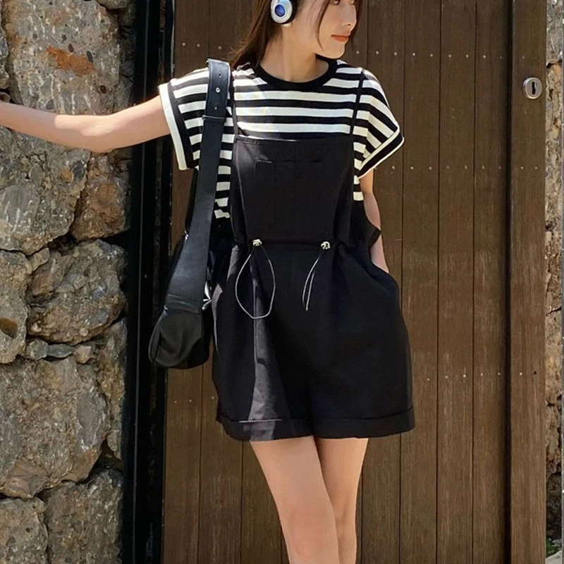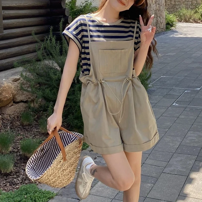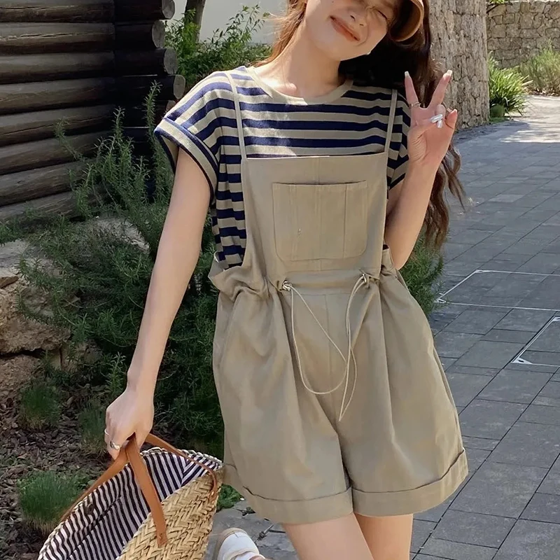 vmtvr High Waist Women Playsuits Korean Casual Pocket Loose Rompers Summer Fashion All Match Female Streetwear Bib Shorts