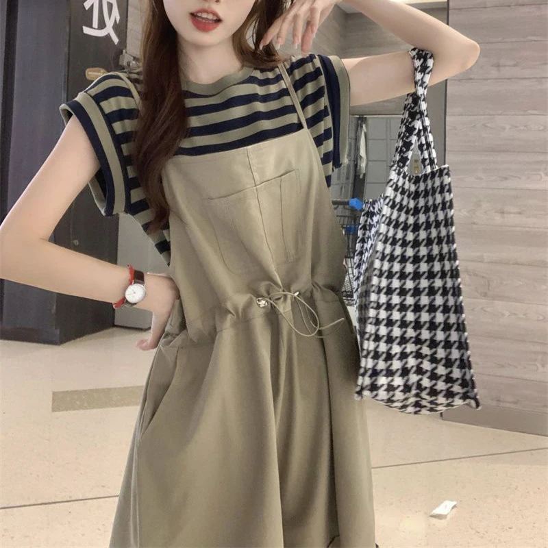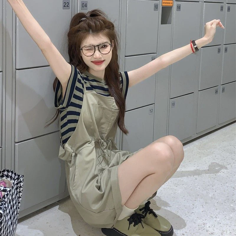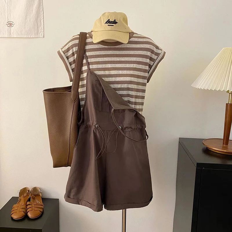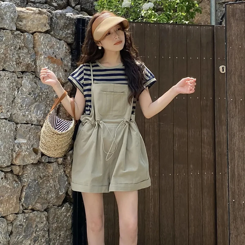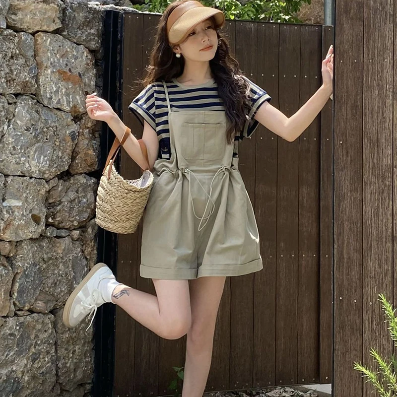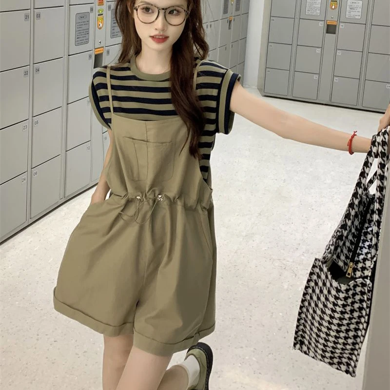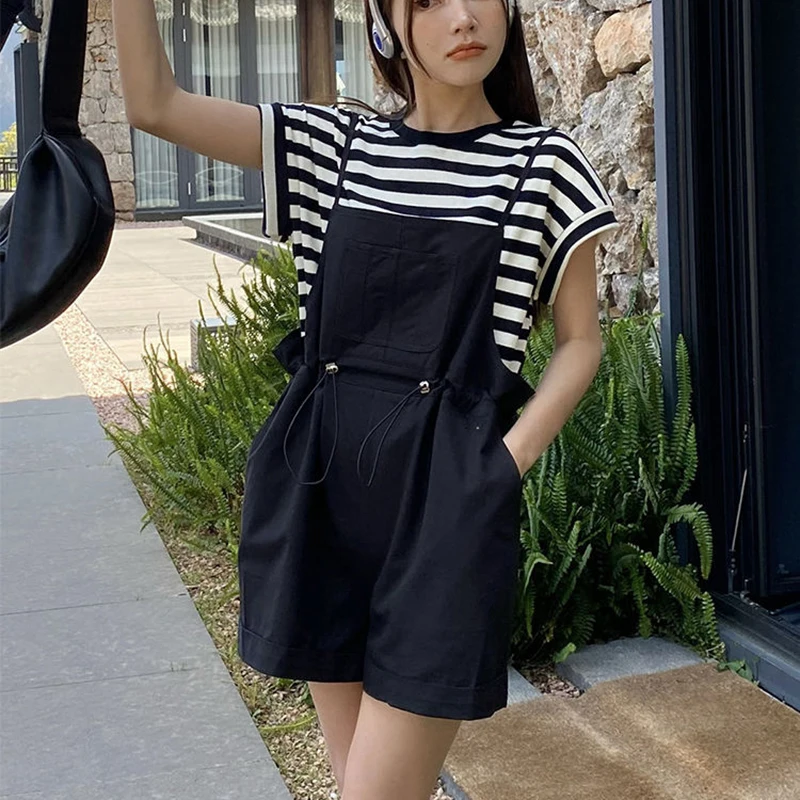 vmtvr High Waist Women Playsuits Korean Casual Pocket Loose Rompers Summer Fashion All Match Female Streetwear Bib Shorts