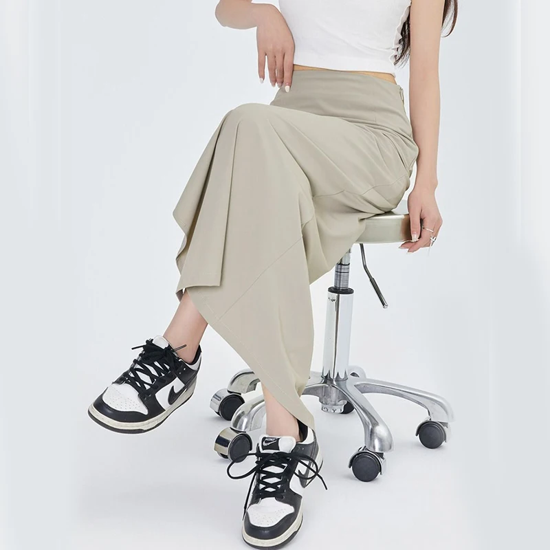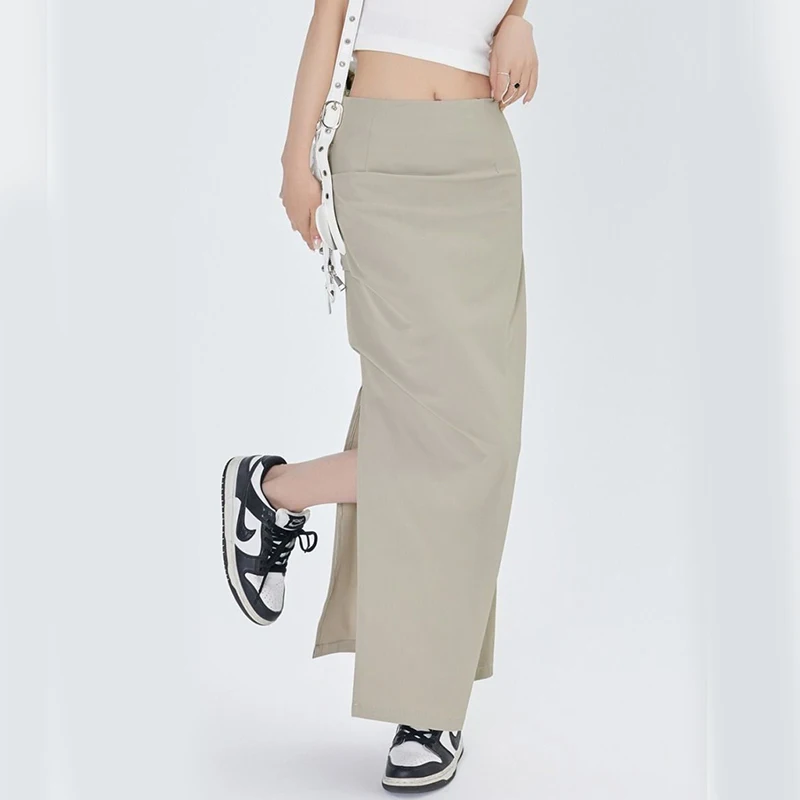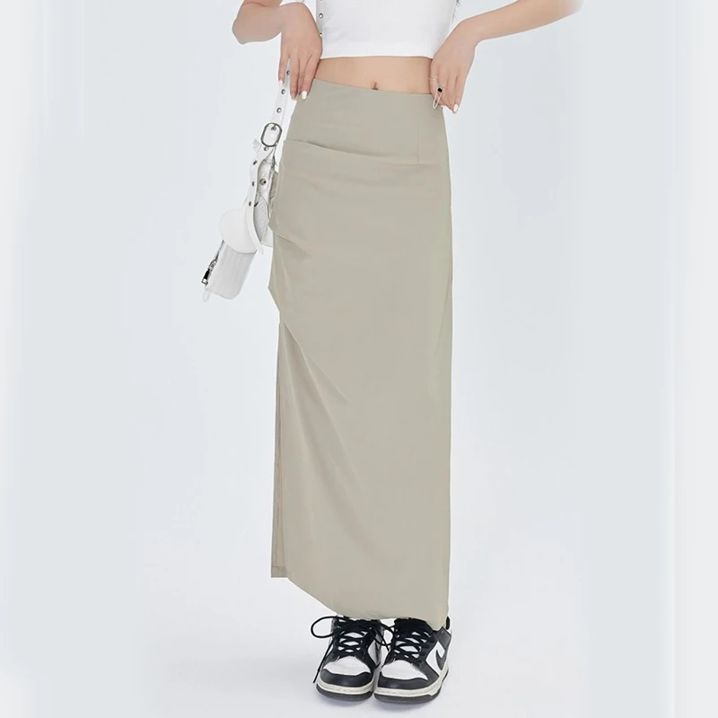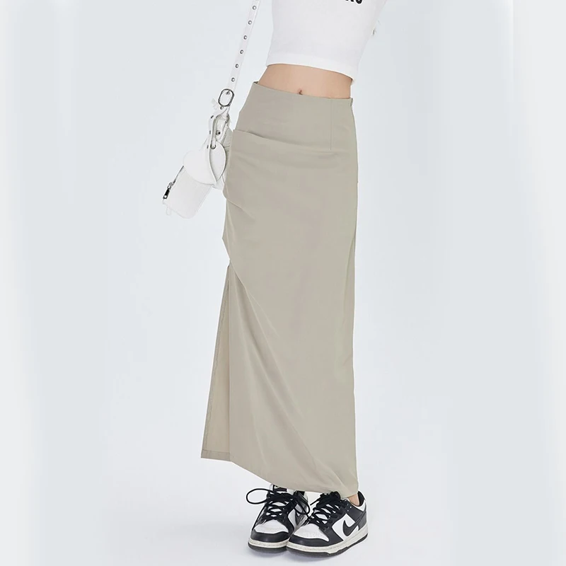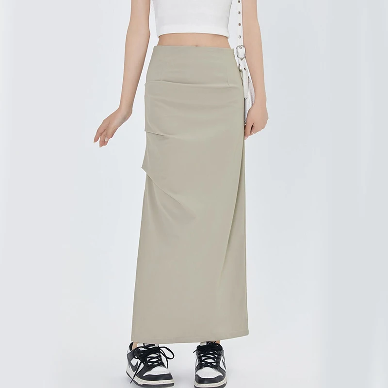 vmtvr High Waist Women Skirts Summer American Style Elegant Folds Ankle Length Skirts Female Casual All Match Split Skirts New
