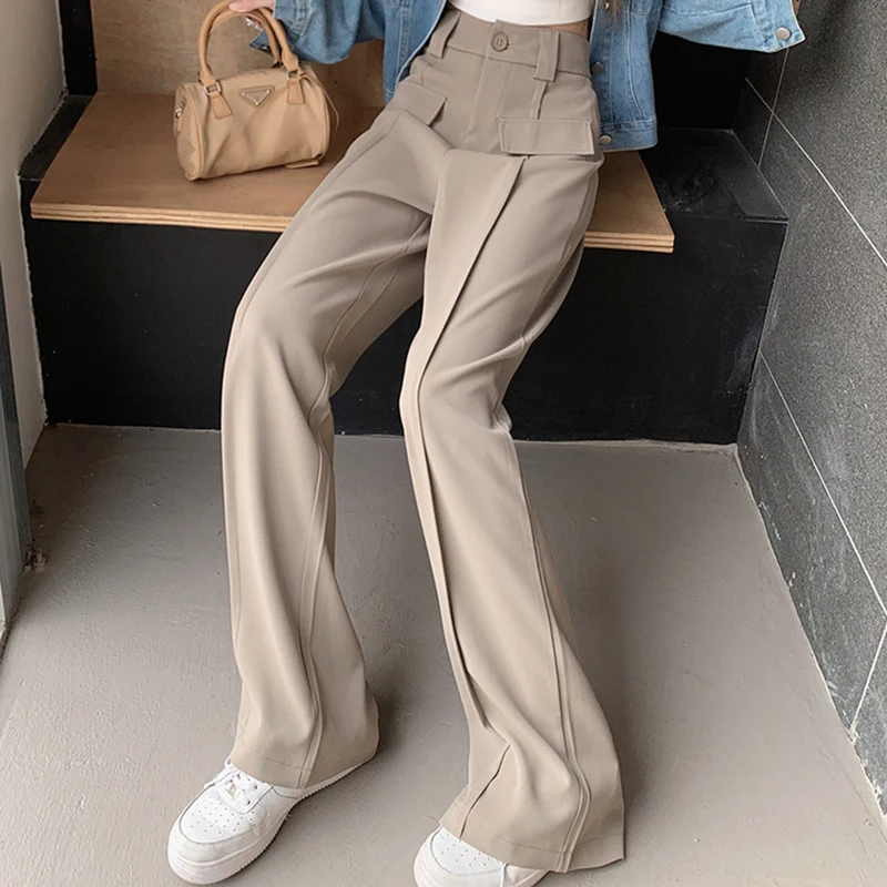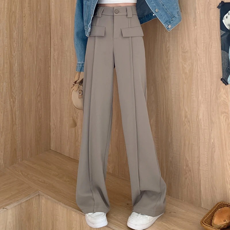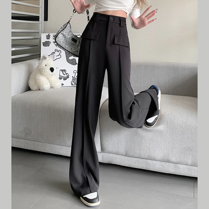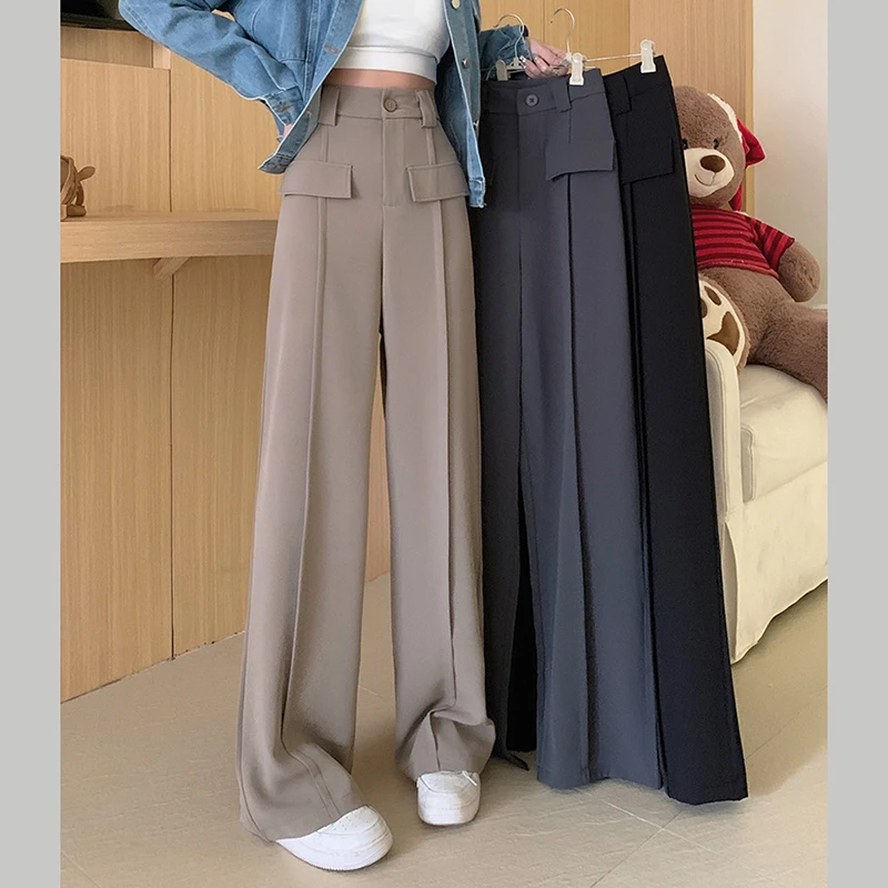 vmtvr High Waist Women Suit Pants Summer Fashion Designed Loose Wide Leg Pants Korean Female Casual Straight Trousers New