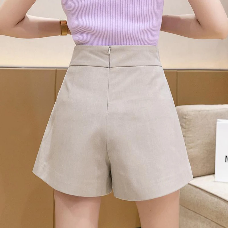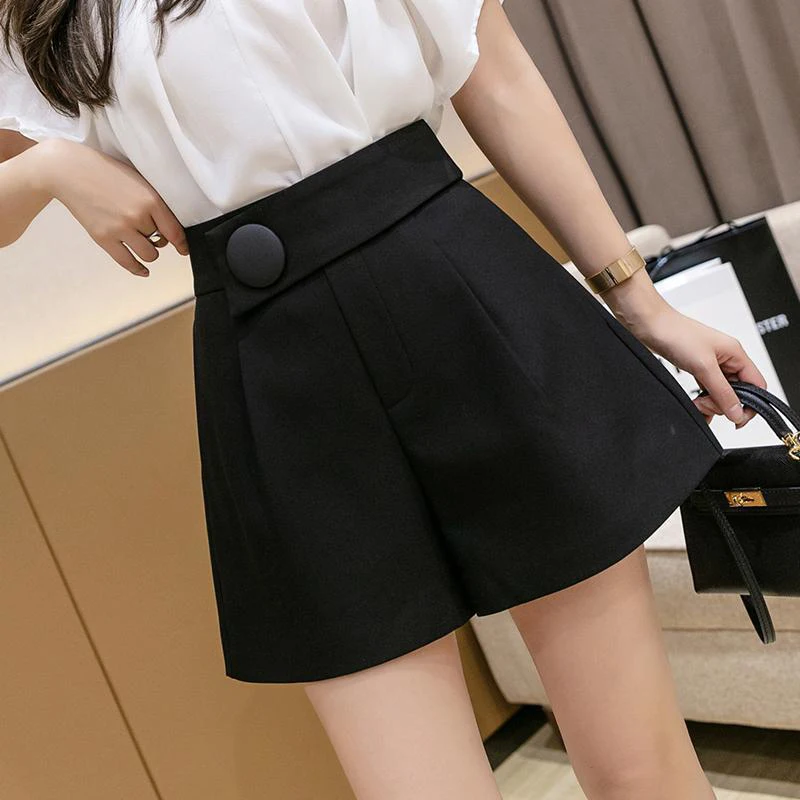 vmtvr High Waist Women Suit Shorts Summer Fashion Big Button Loose Casual Shorts Female Korean Solid Black Wide Leg Pants New
