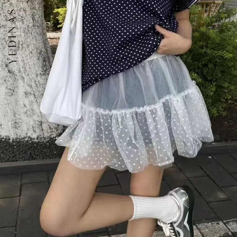 vmtvr Hotsweet Dot Ball Gown Mini Skirts For Women Summer Mesh High Waist Korean Fashion Women's Skirt Kawaii Y2k Chic