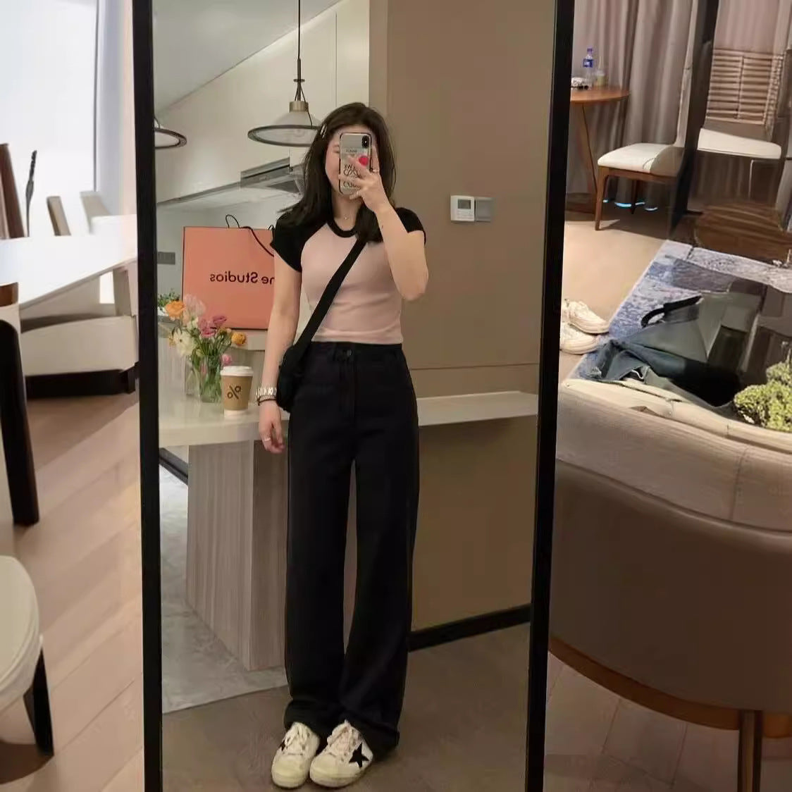 joker costume female outfit Black Straight Ripped Jeans Women's High Waist Summer Loose Slimming Pear-Shaped Wide-Leg Pants