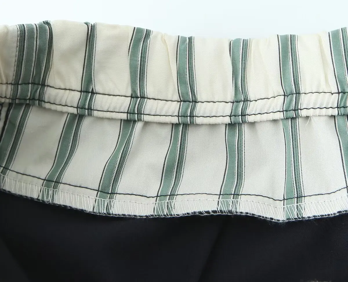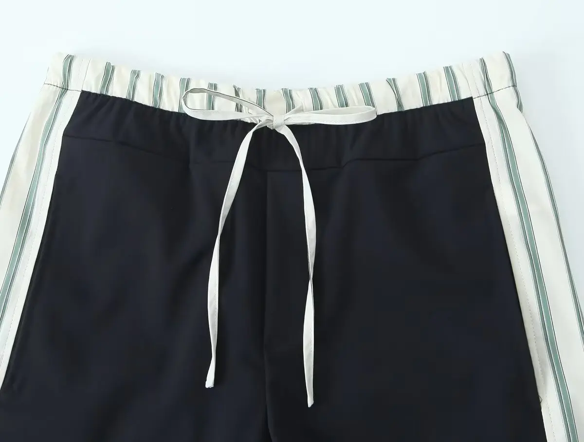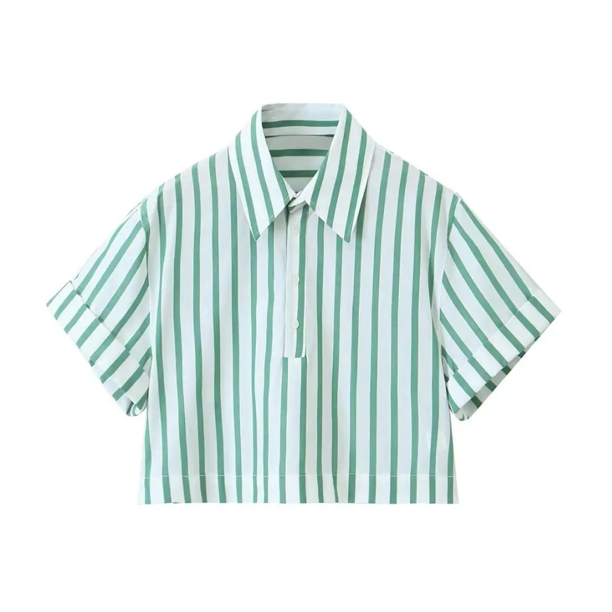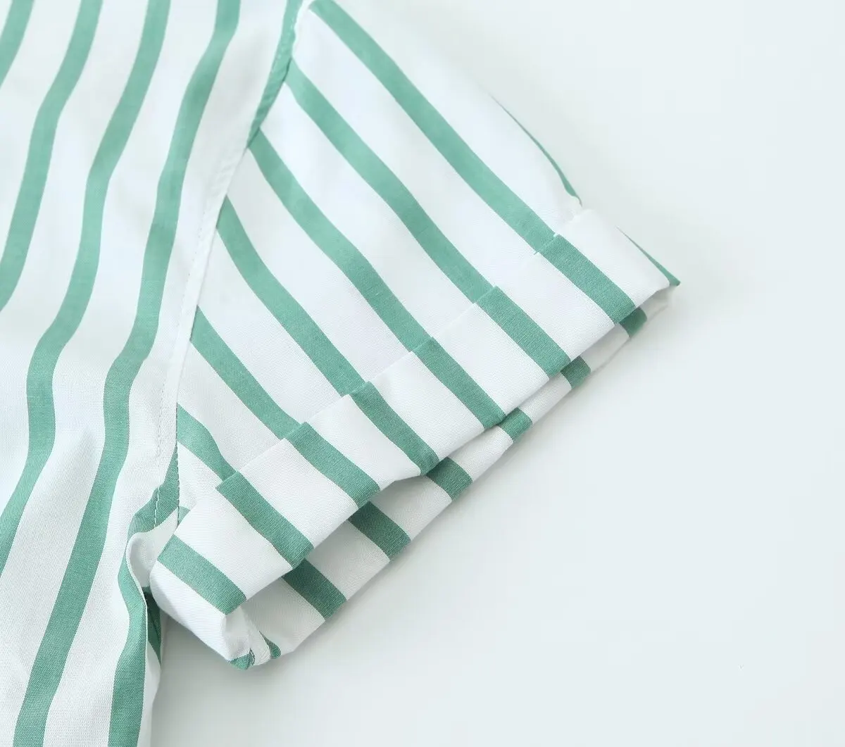 vmtvr New Summer Casual Striped Shirt Suit Women Short Sleeve Lapel Pullover Top +Elastic Waist Lace Up Pants 2024 Spring New