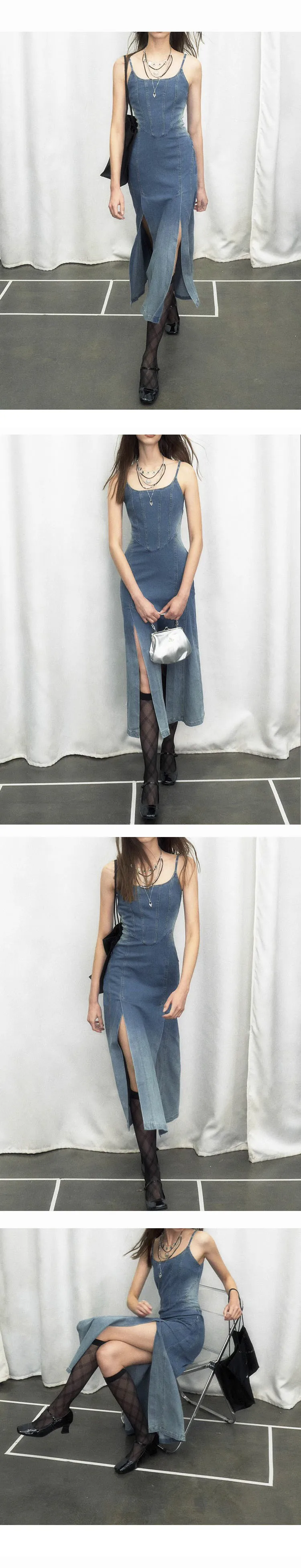 vmtvr New Summer Women Sexy Slip Denim Dress Fashion Straples High Waist Dress Lady Slim A-line Jean Dress