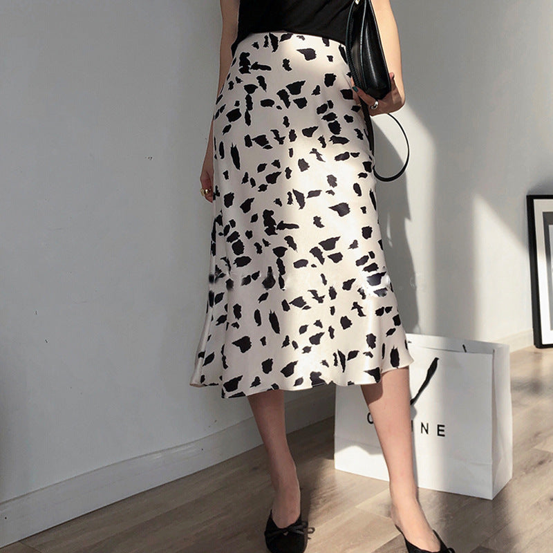 vmtvr outfit Chic Black and White New Spring and Summer A- line Skirt Cow Striped Mid-High Waist Slimming Sheath Fishtail Skirt One-Step Skirt for Women