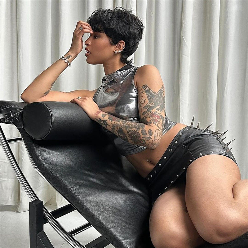 vmtvr outfit inspo Fashion 2024 Summer New Women's round Neck Versatile Slim Solid Color Glossy Vest for Women