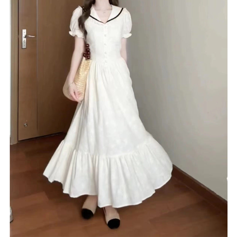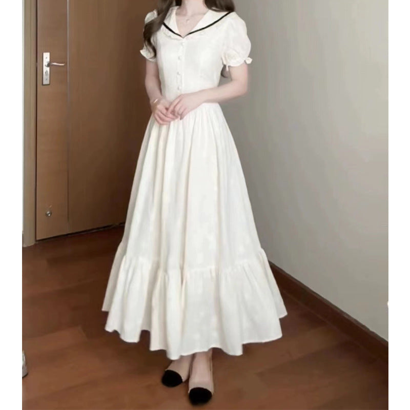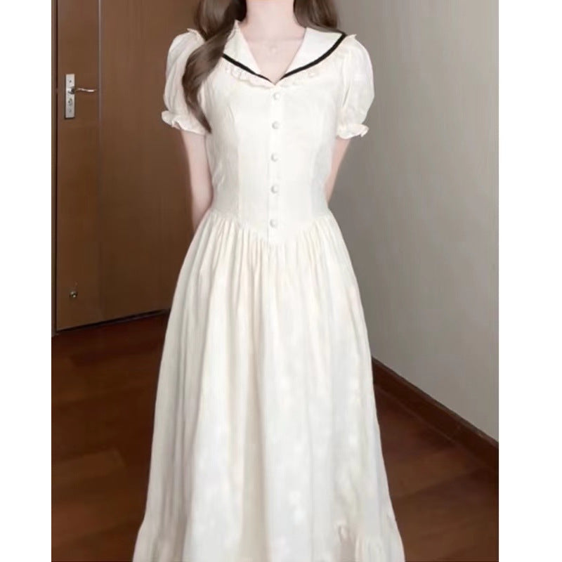 pirates vs sailors drees to impress French Preppy Style Navy Collar Elegant Contrast Color Waist Slimming Embroidered Short Sleeve Dress 2024 Summer New for Women