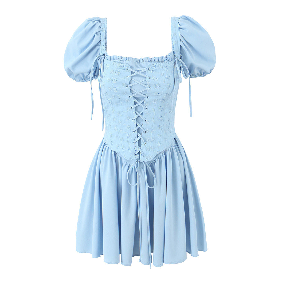 pop culture dress to impress Women's Clothing 2024 Summer New Sweet Puff Sleeve Square Collar Dress Corset Princess Dress Two Pieces