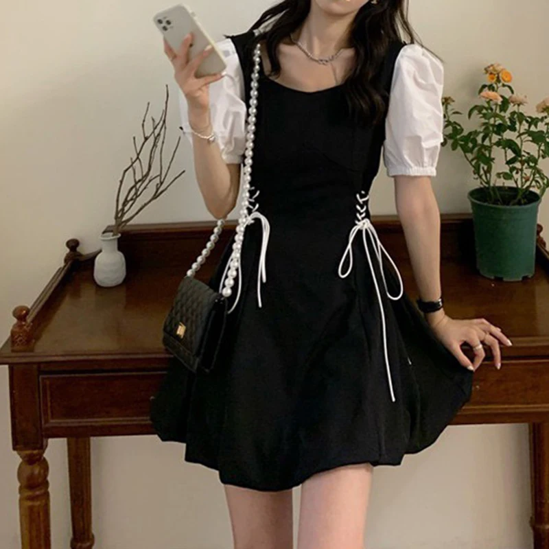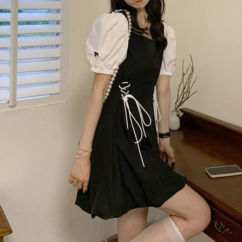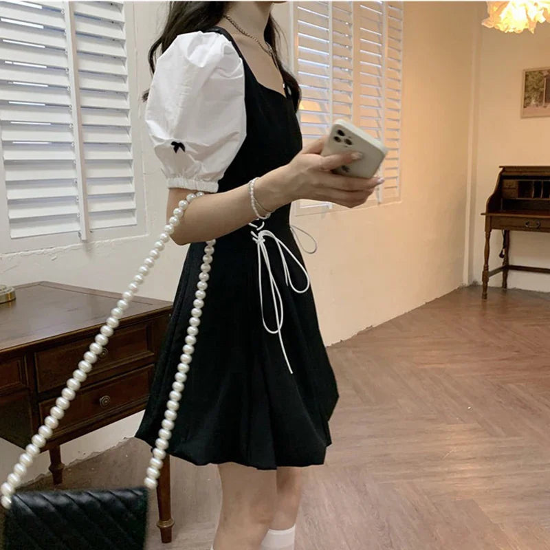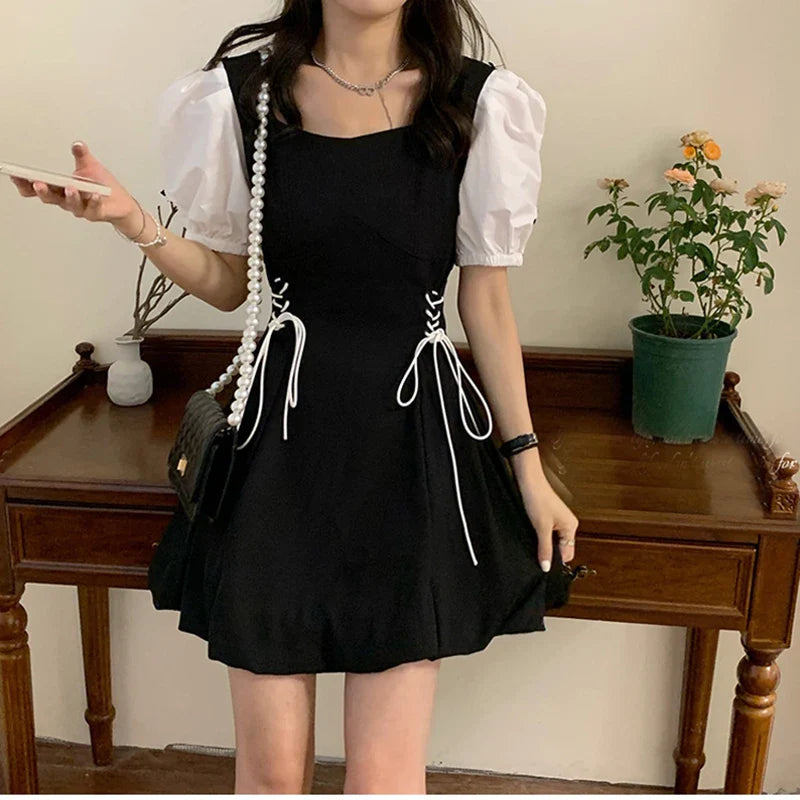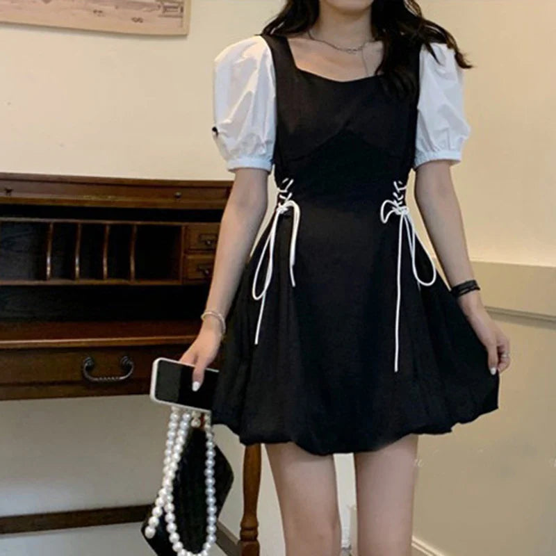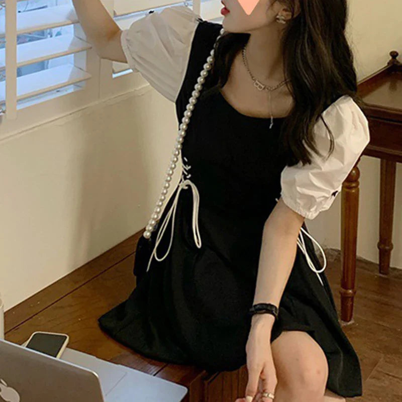 vmtvr Puff Sleeves Women Dress French Patchwork Hepburn Style Mini Dress Y2K Female Fashion Elegant Party Dresses Summer New