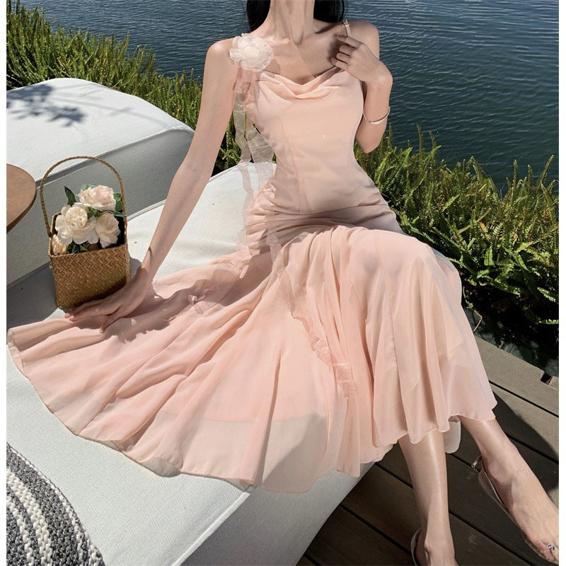 pumpkin patch dress to impress Fairy Elegant Big Backless Pink Suspender Skirt Women's Summer Waist Slimming Dress