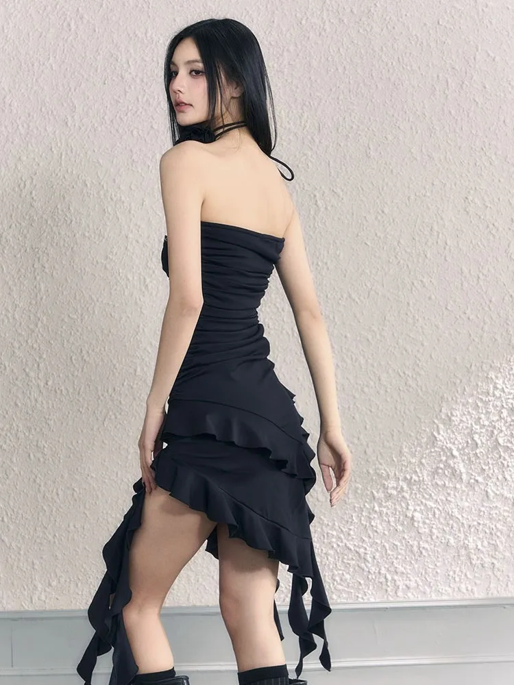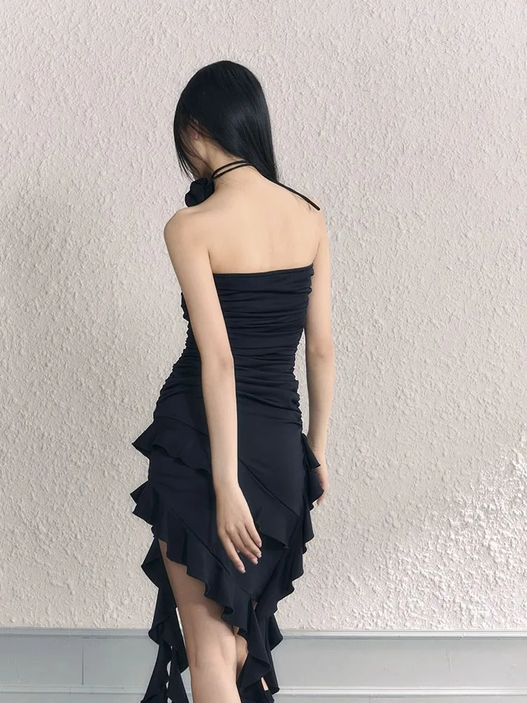 vmtvr Ruffles Tassels Fairy Dresses Flower Sexy Waist Wrapping Dress For Women Summer Beach Holiday Short Mini Dress