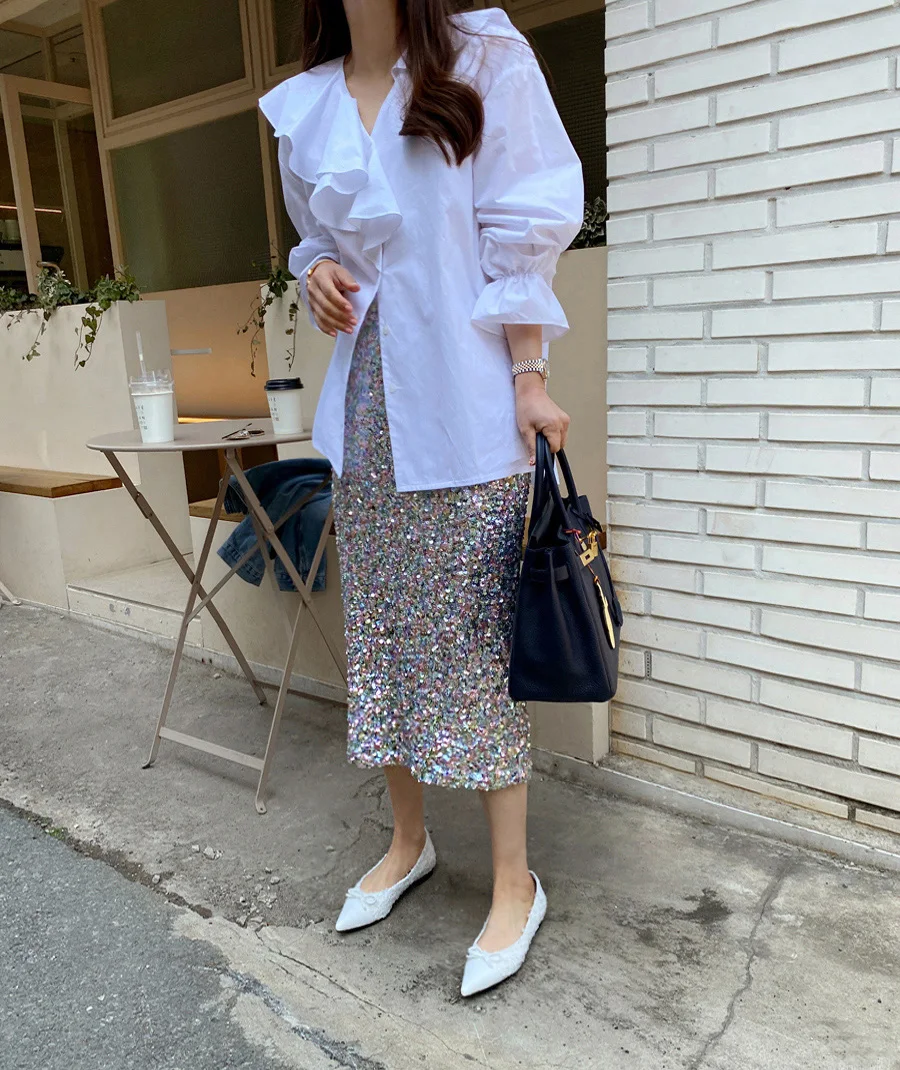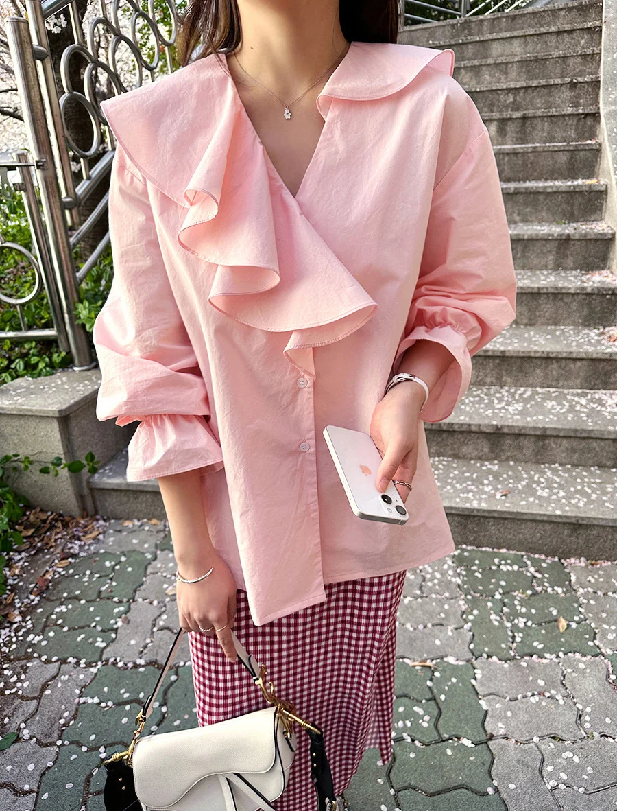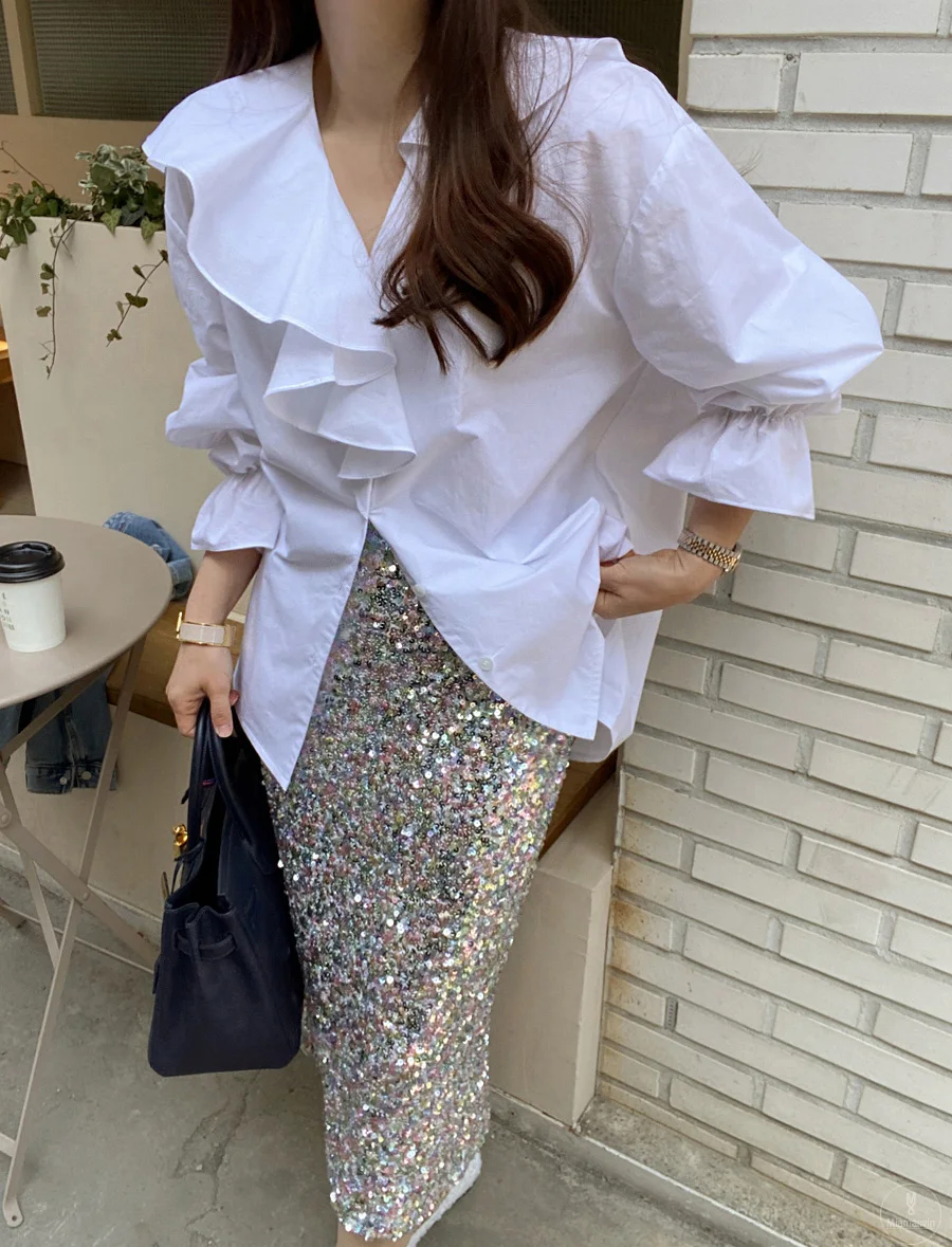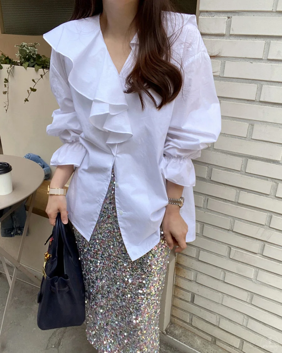 vmtvr Ruffles V-Neck Cotton Shirts Elegant Women Female Lantern Sleeve Tops Blouses Casual OL Shirt Blusas Spring Summer