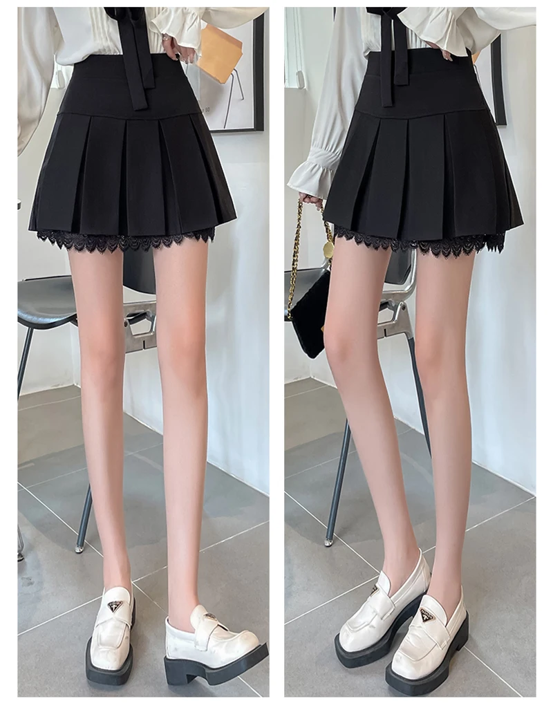 vmtvr Sexy Lace Patchwork Mini Skirt Woman Japan Sweet Pleated A-Line Dance Skirt Summer Fashion Preppy Style High Waist Skirt