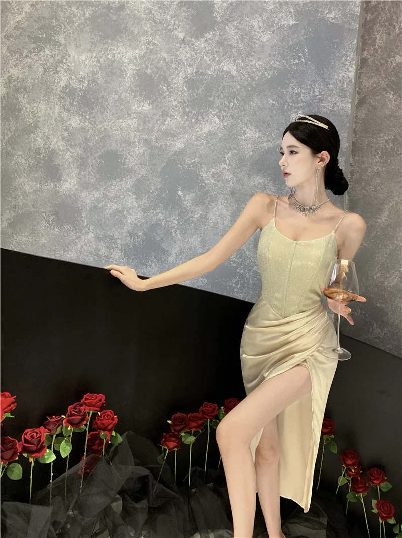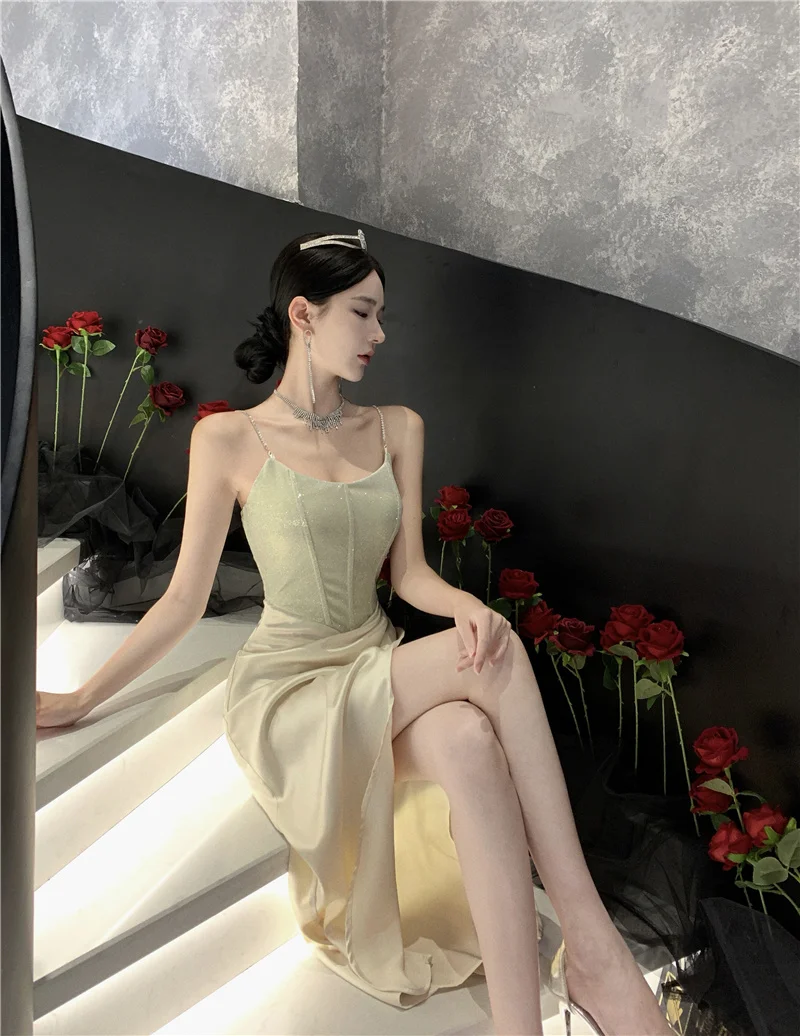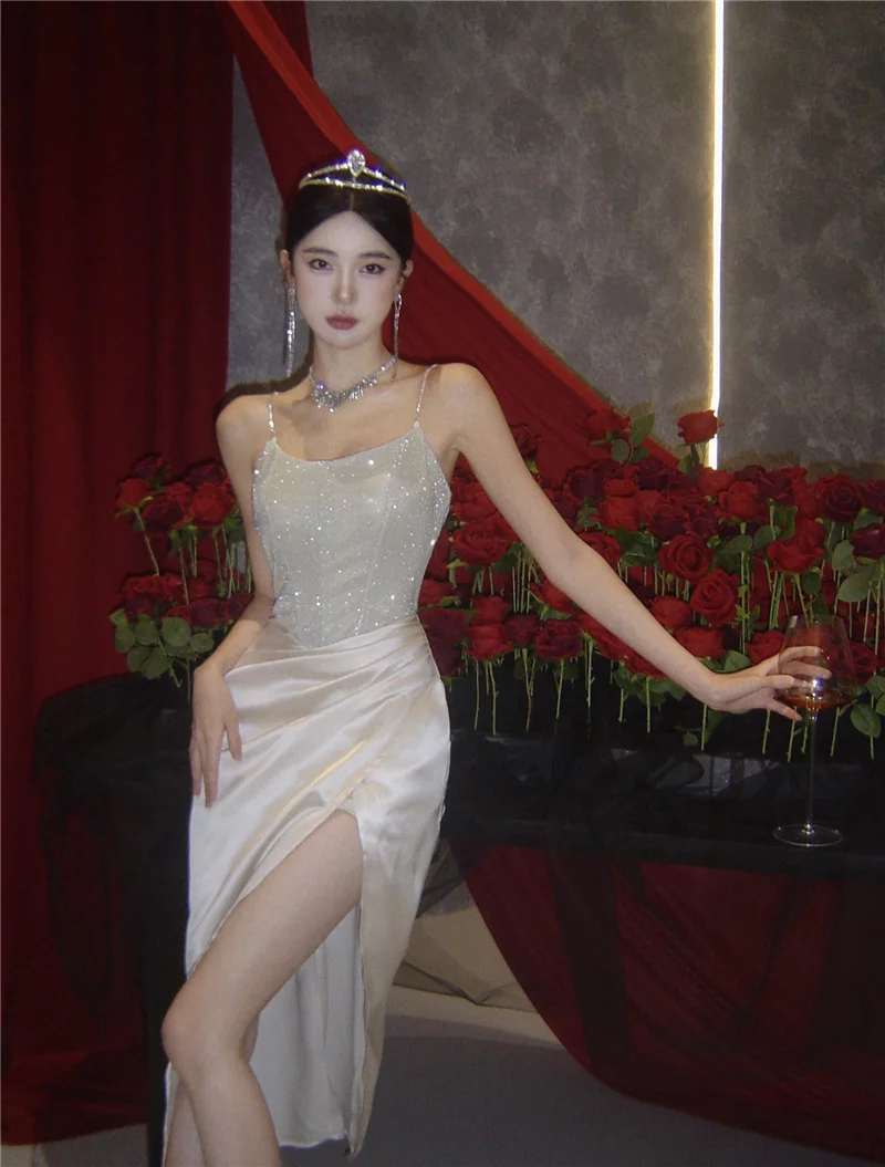 vmtvr Sexy Satin Evening Party Dress Women Sleeveless High Split Y2K Spring Summer New French Style Club Prom One Piece Vestidos Mujer