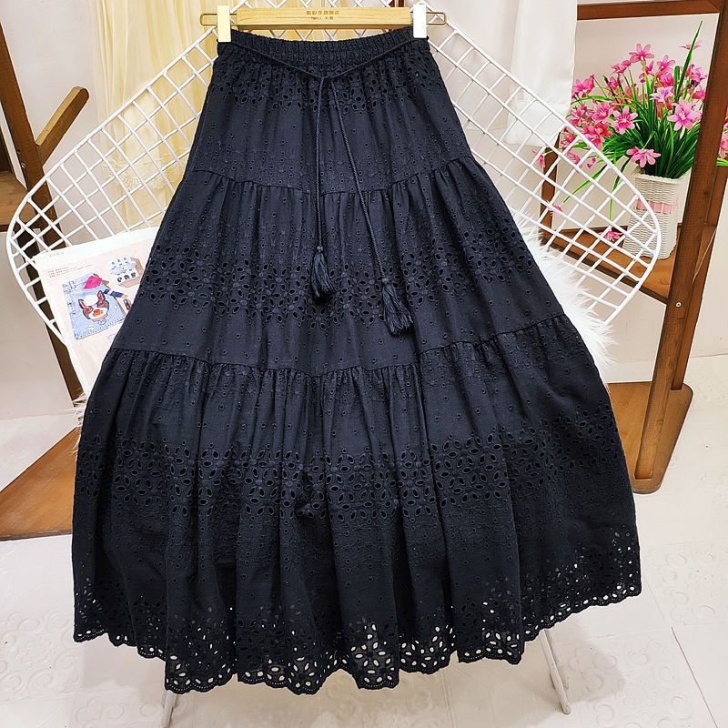vmtvr skirt outfits 2024 Spring Heavy-Duty Lace Skirt Women's High Waist Stitching Crocheted Fairy Large Swing A- line Midi Skirt Summer